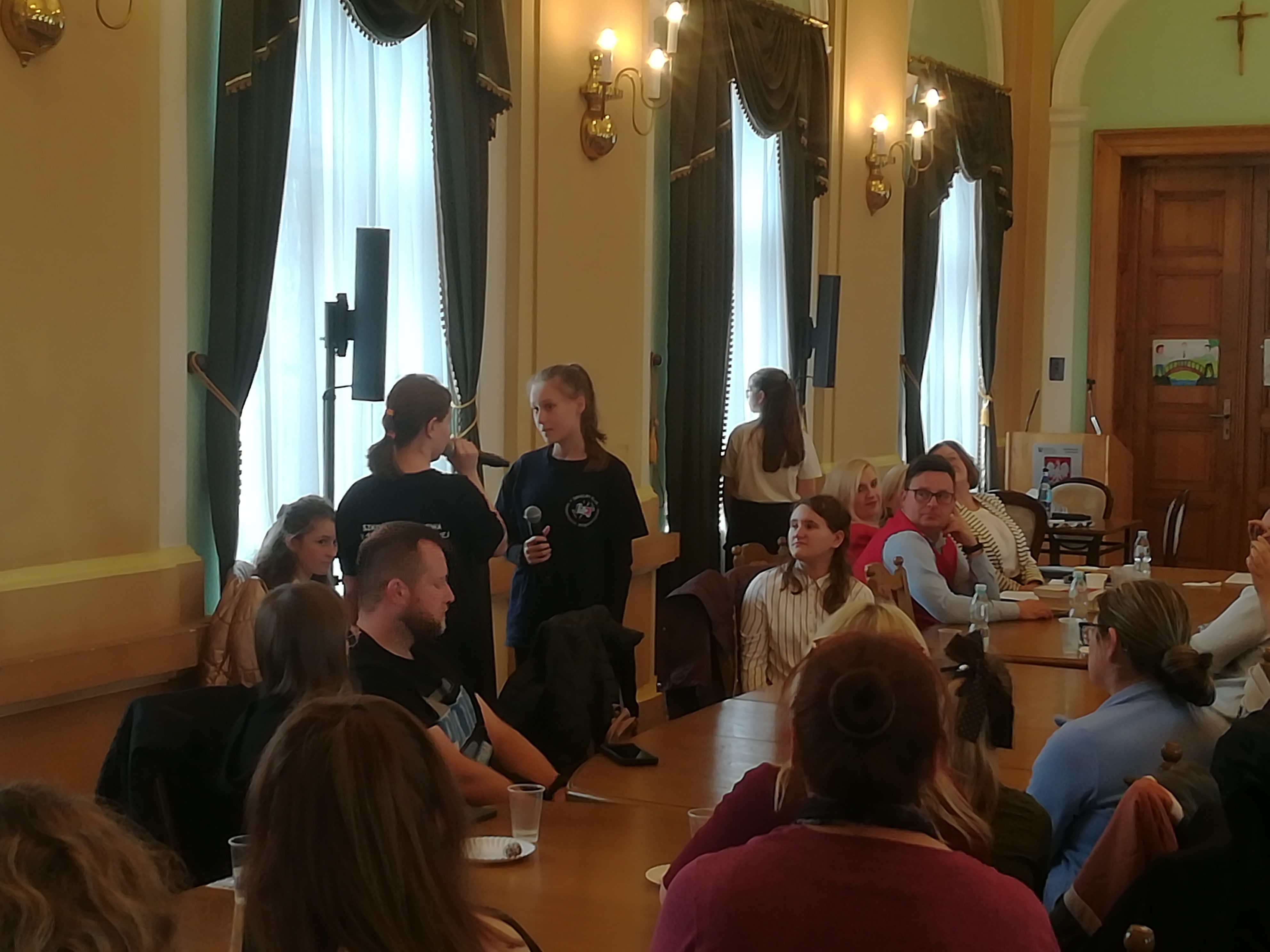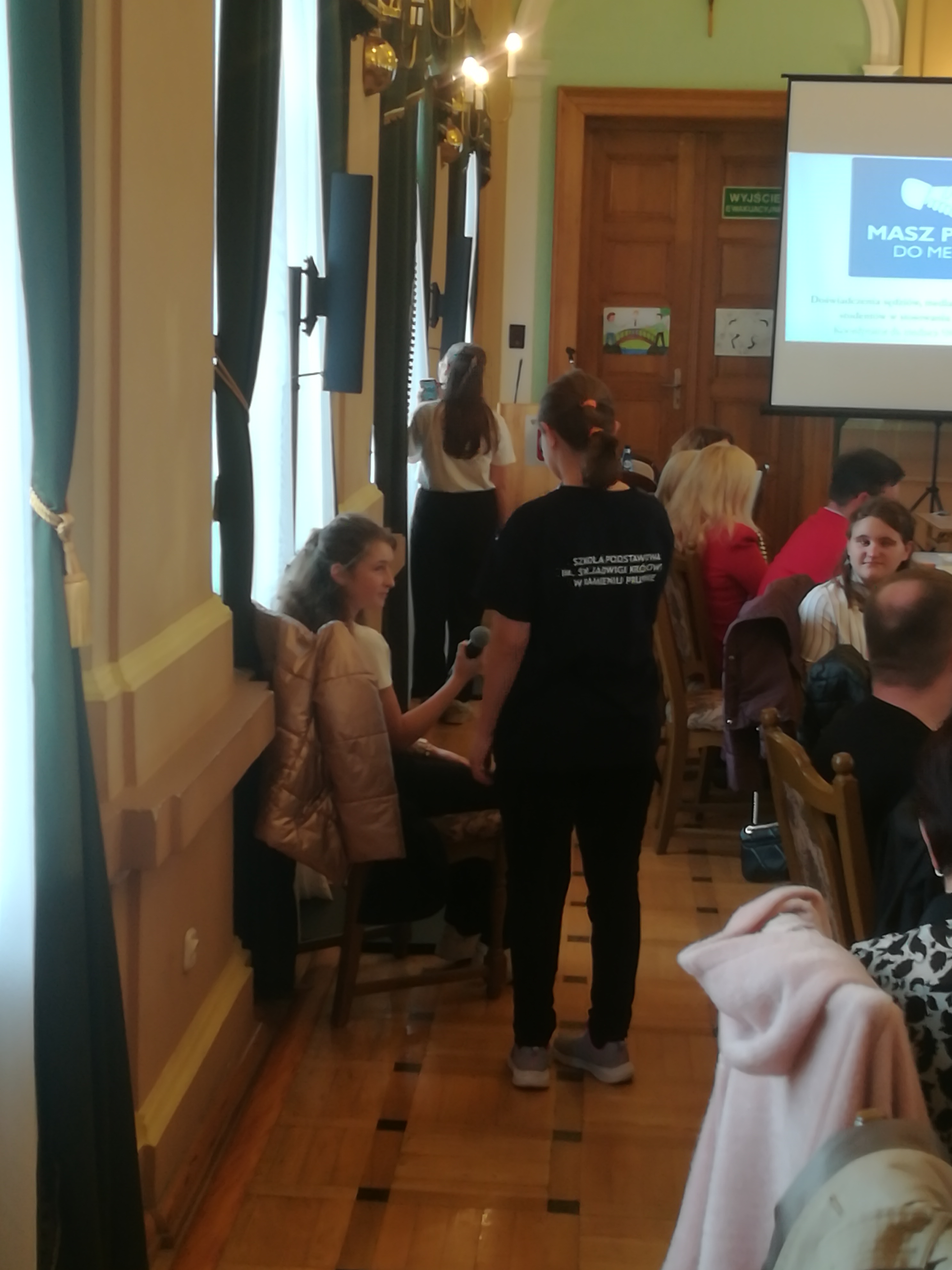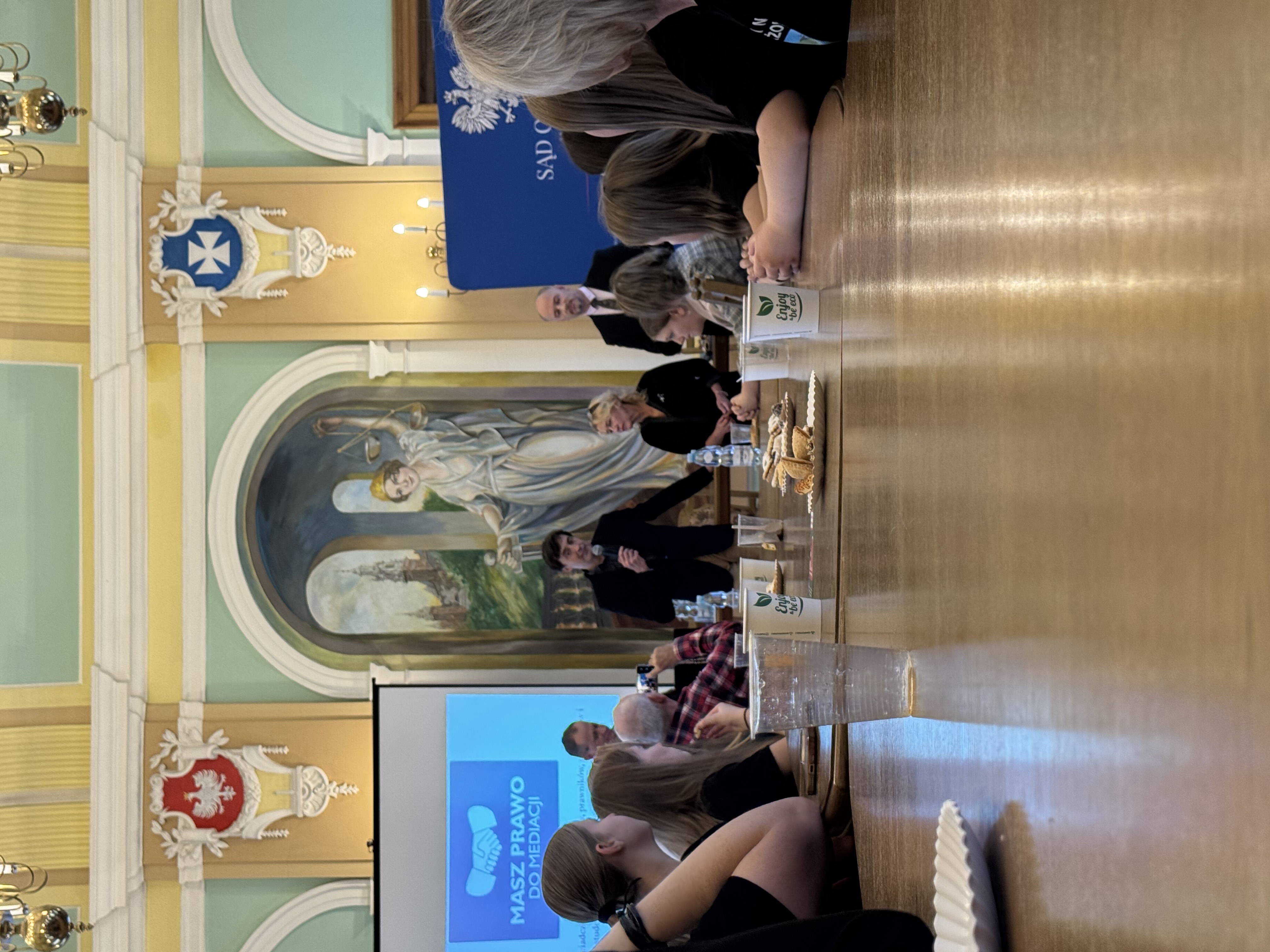 Wyjątkowym punktem konferencji było wystąpienie zwycięzców V Ogólnopolskiego konkursu na symulację mediacji – uczniów reprezentujących Szkołę Podstawową w Kamieniu Prusinie.