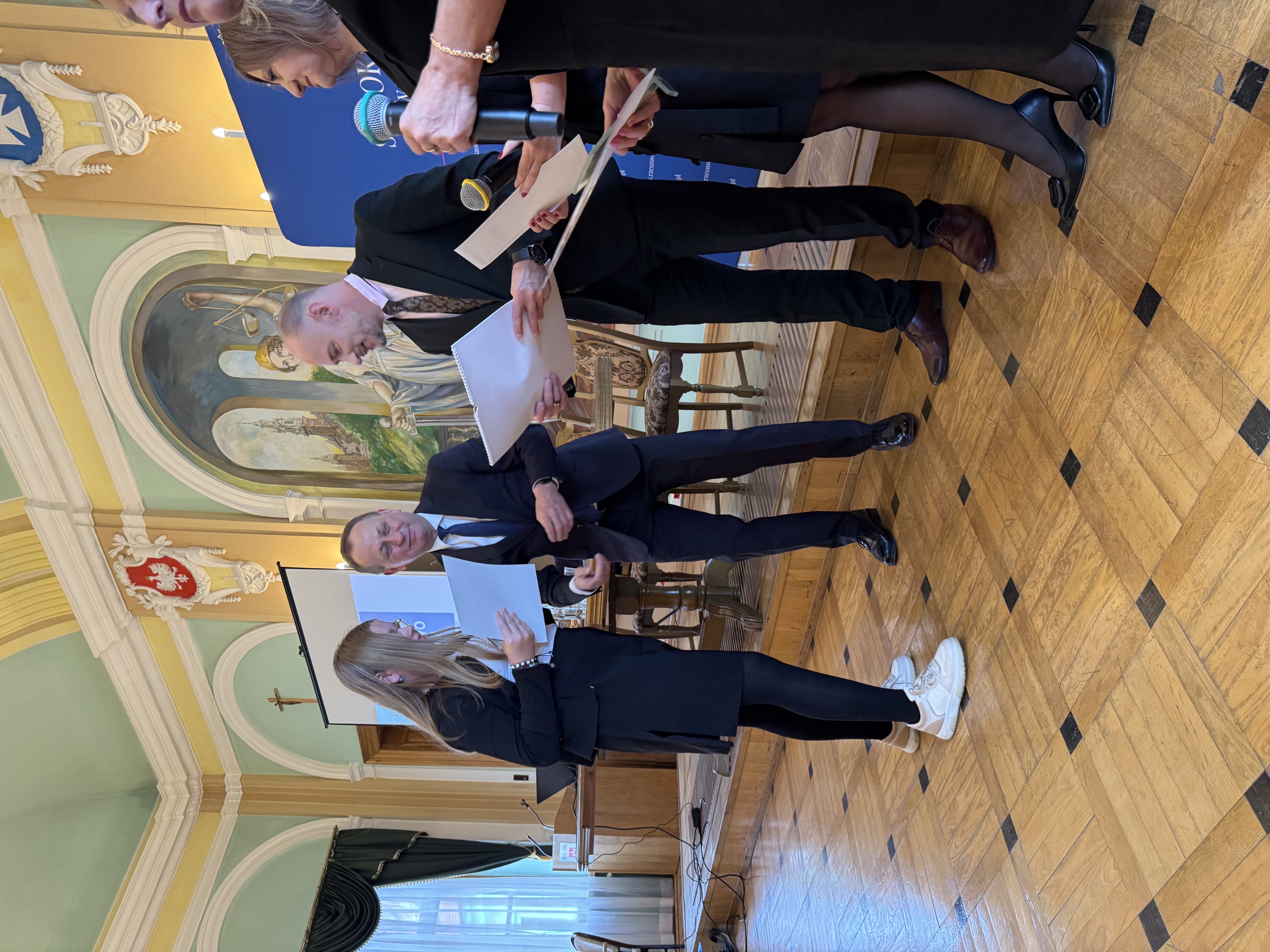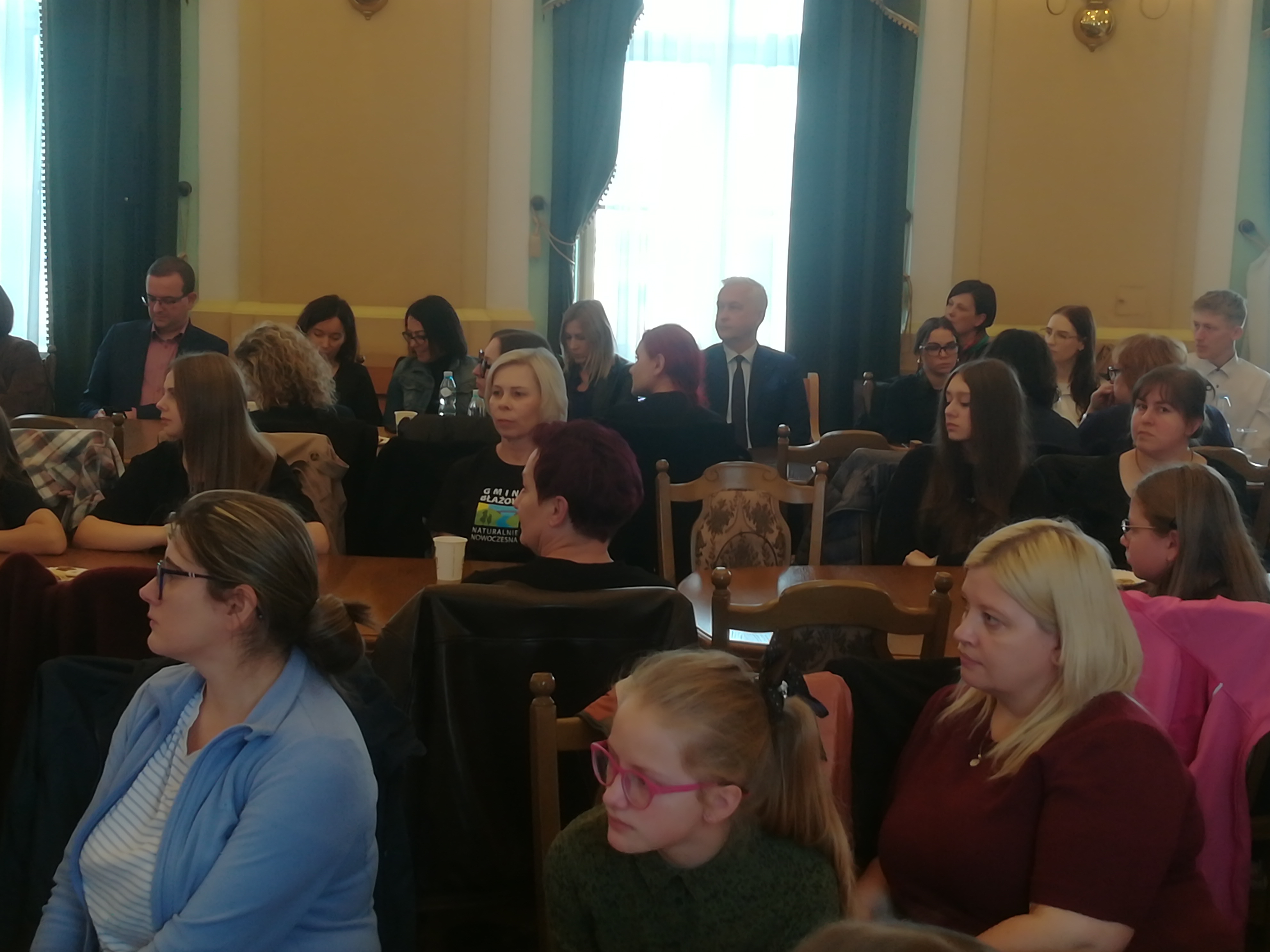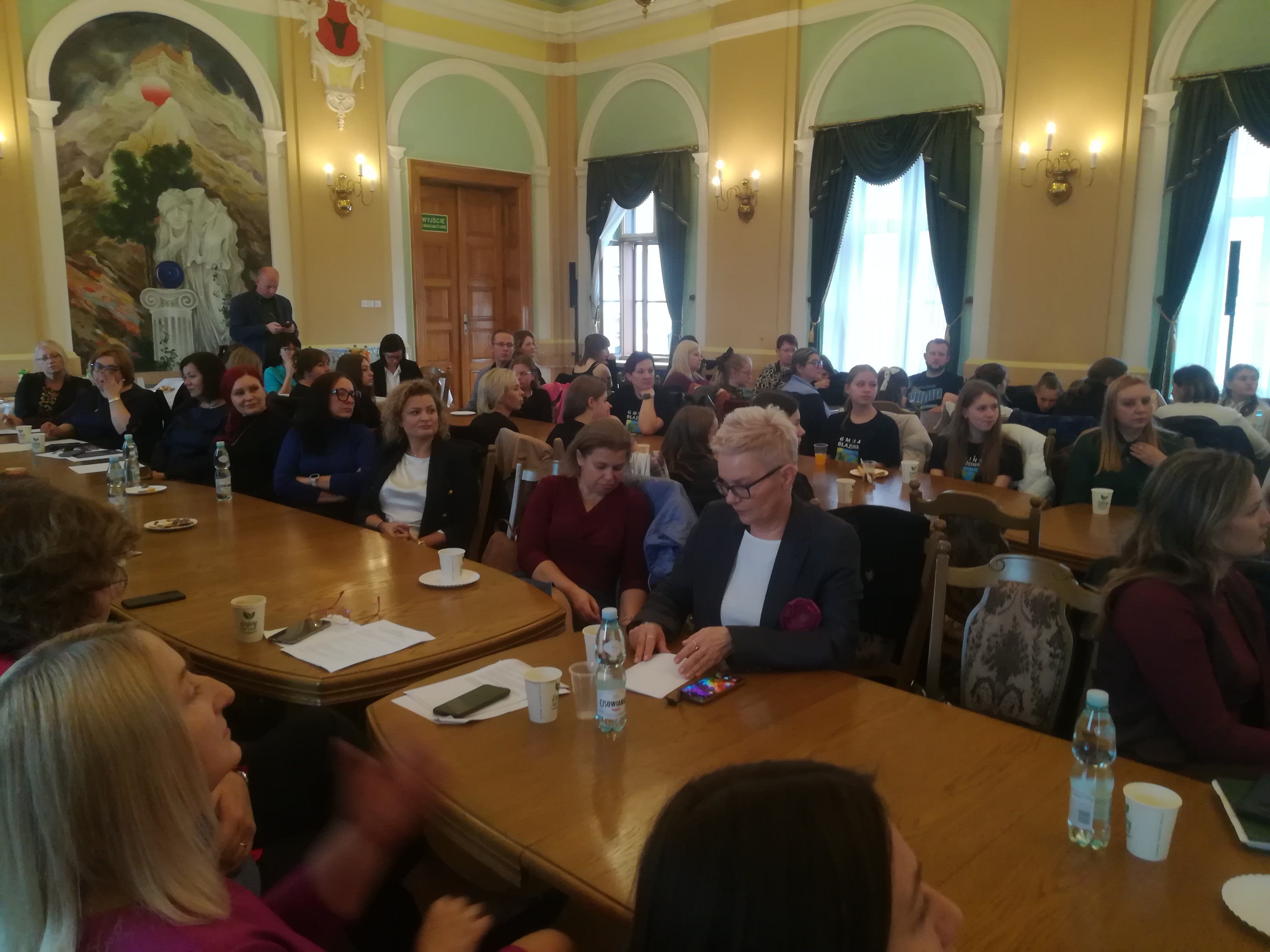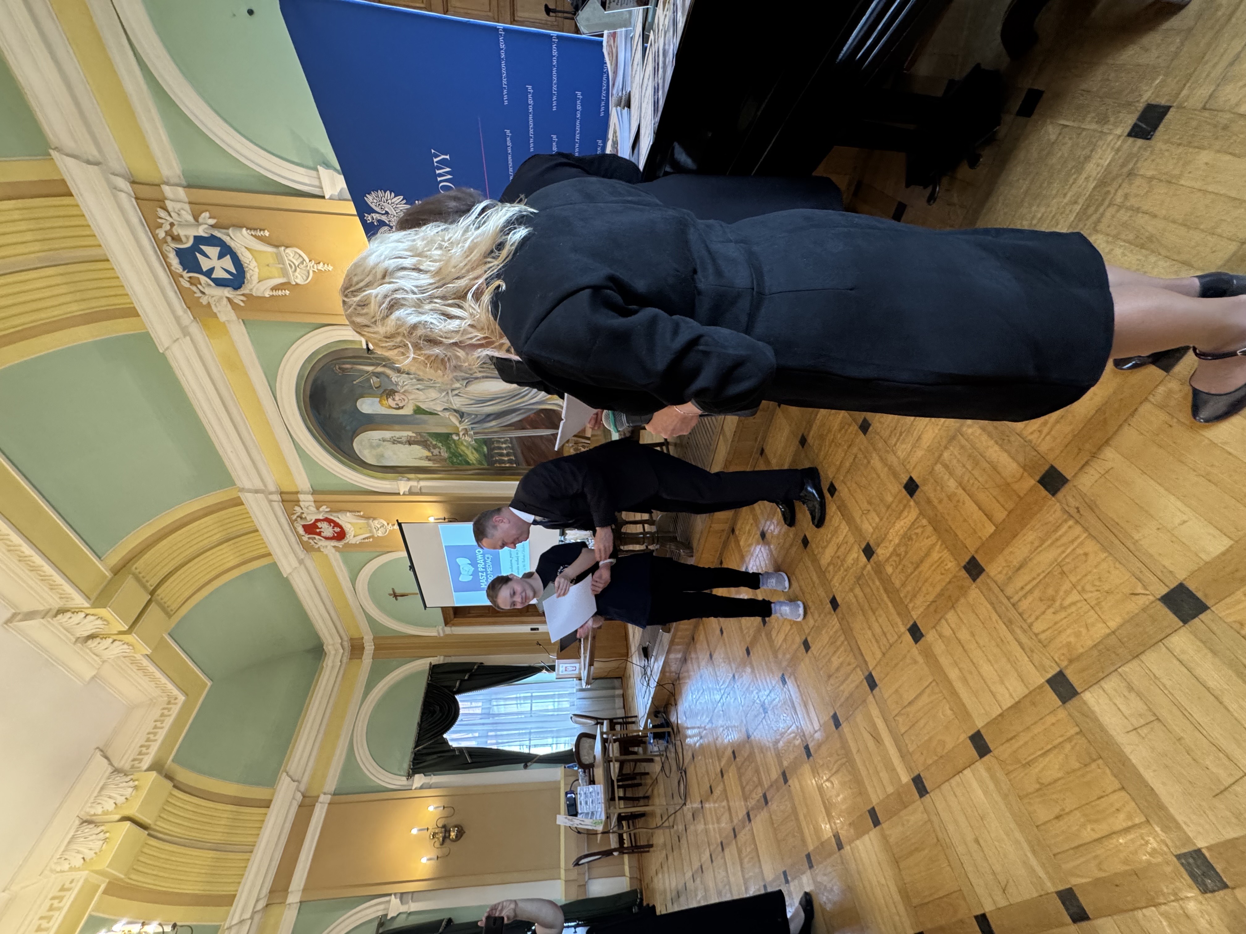 Wyjątkowym punktem konferencji było wystąpienie zwycięzców V Ogólnopolskiego konkursu na symulację mediacji – uczniów reprezentujących Szkołę Podstawową w Kamieniu Prusinie.