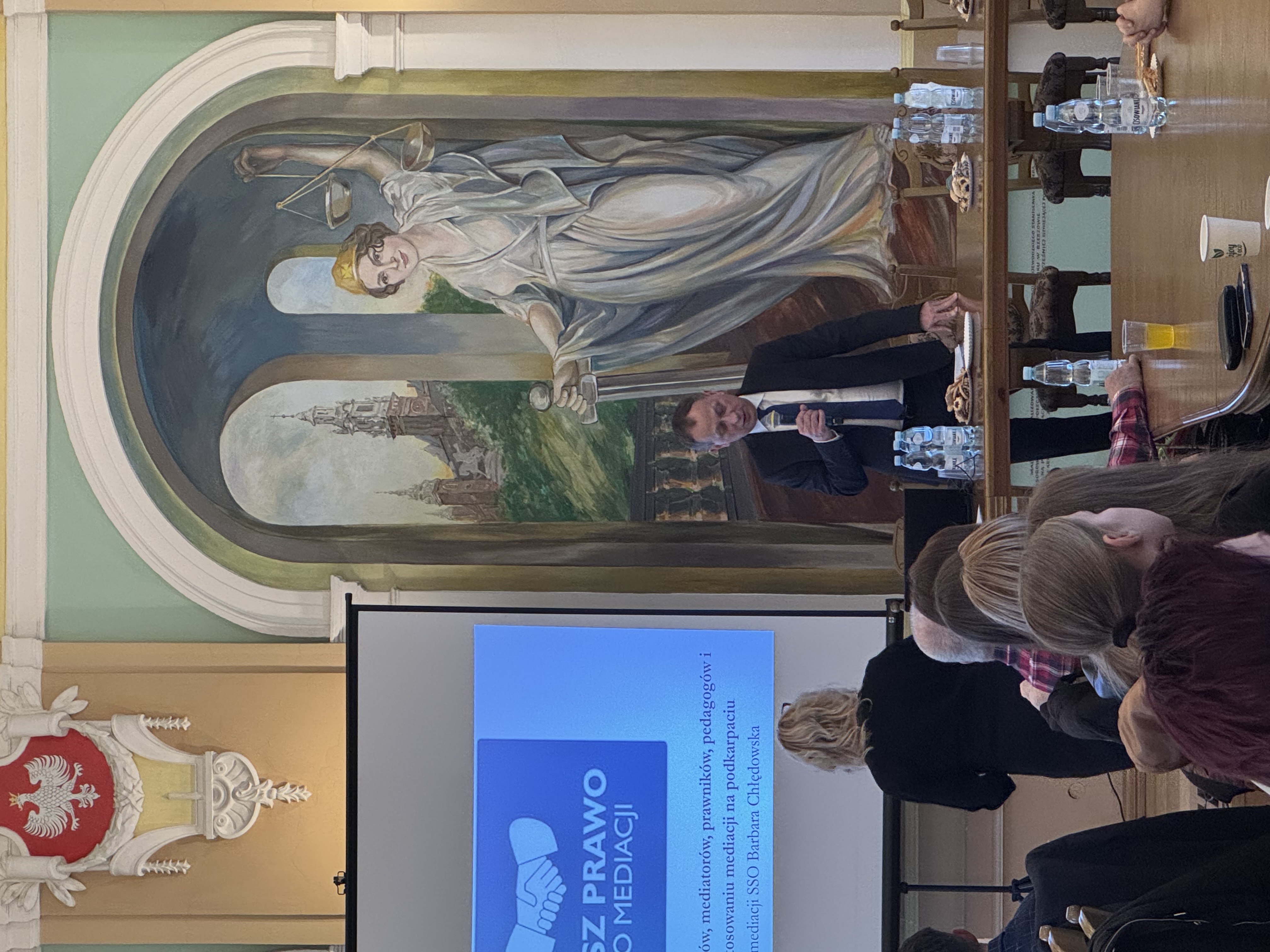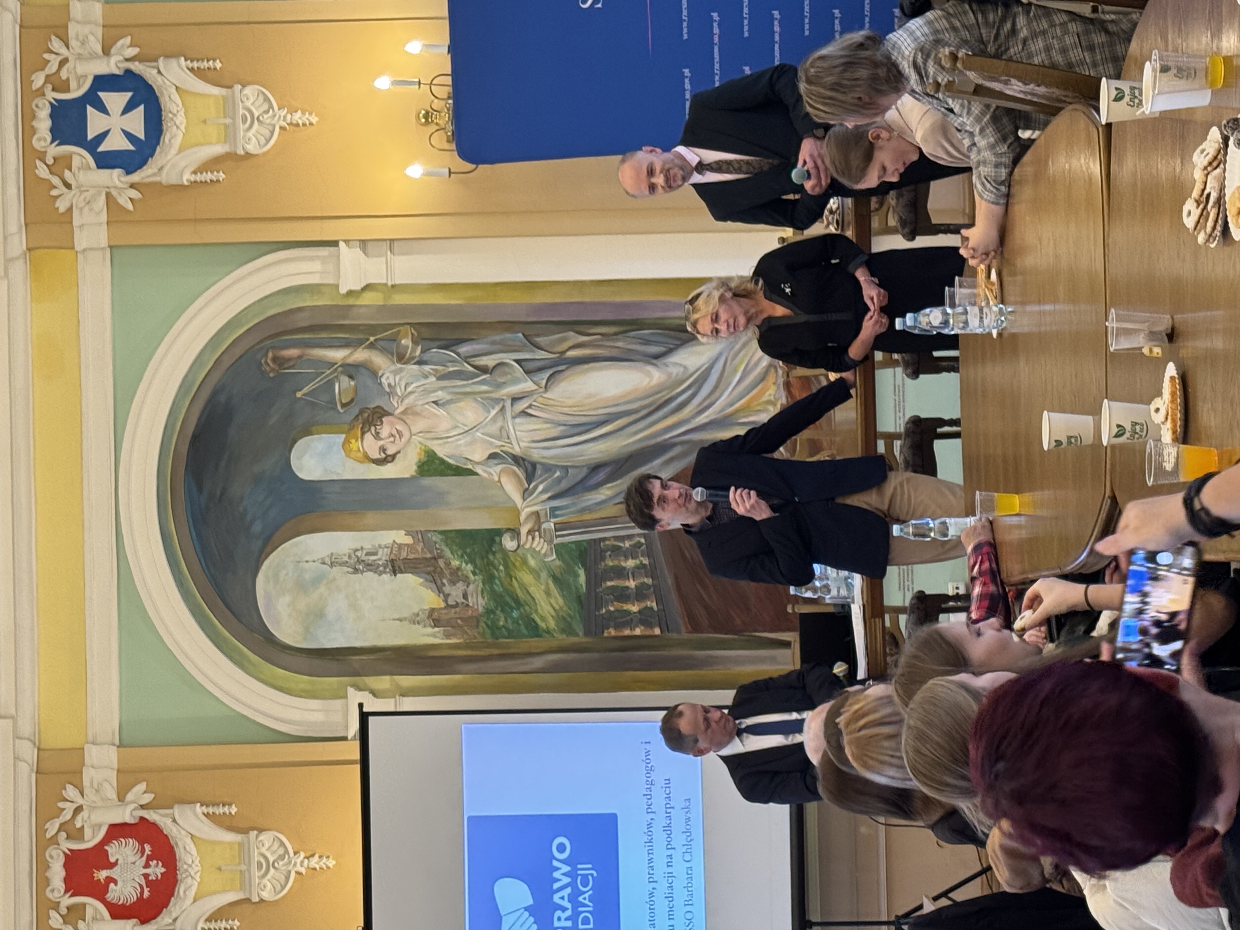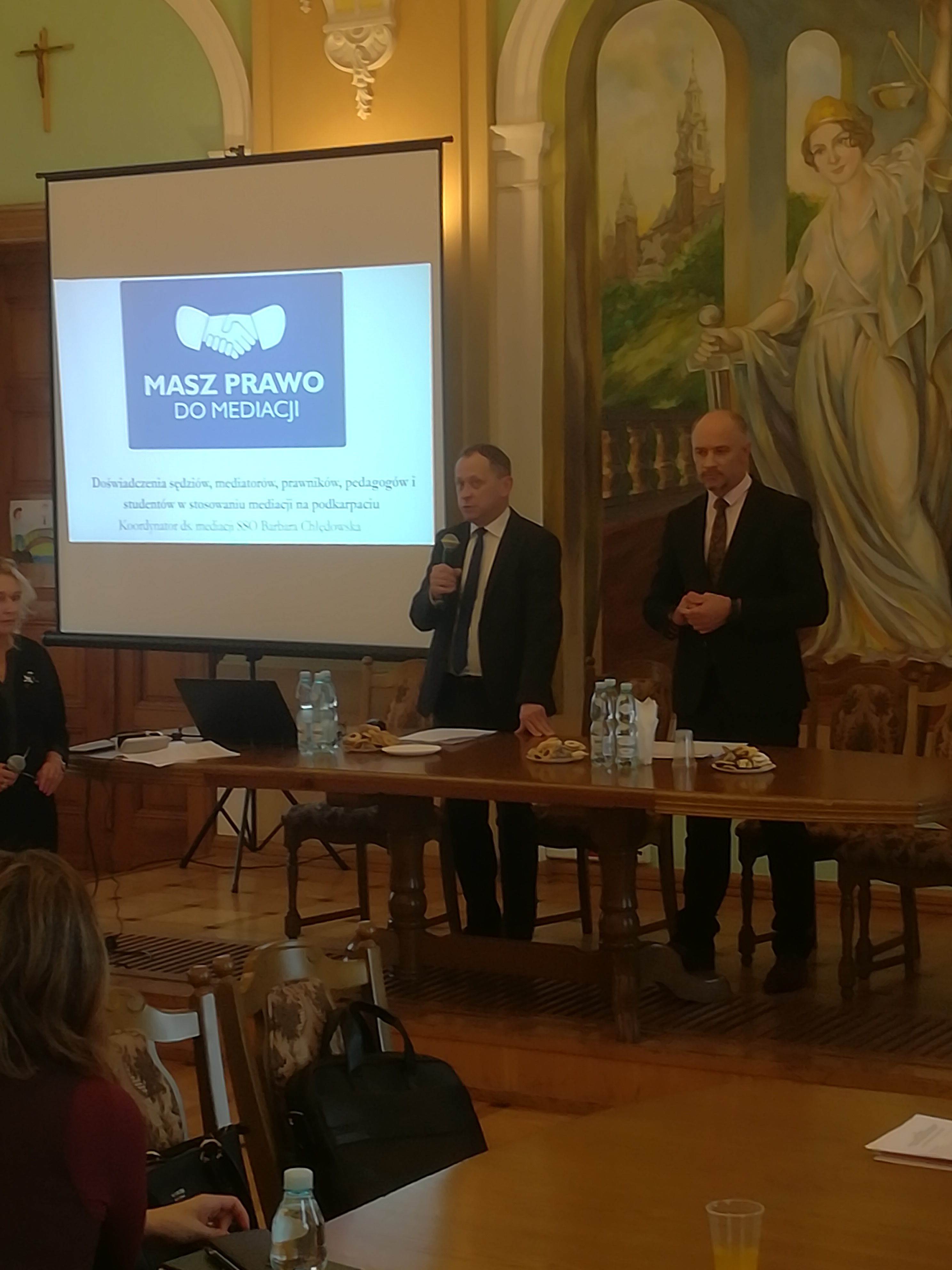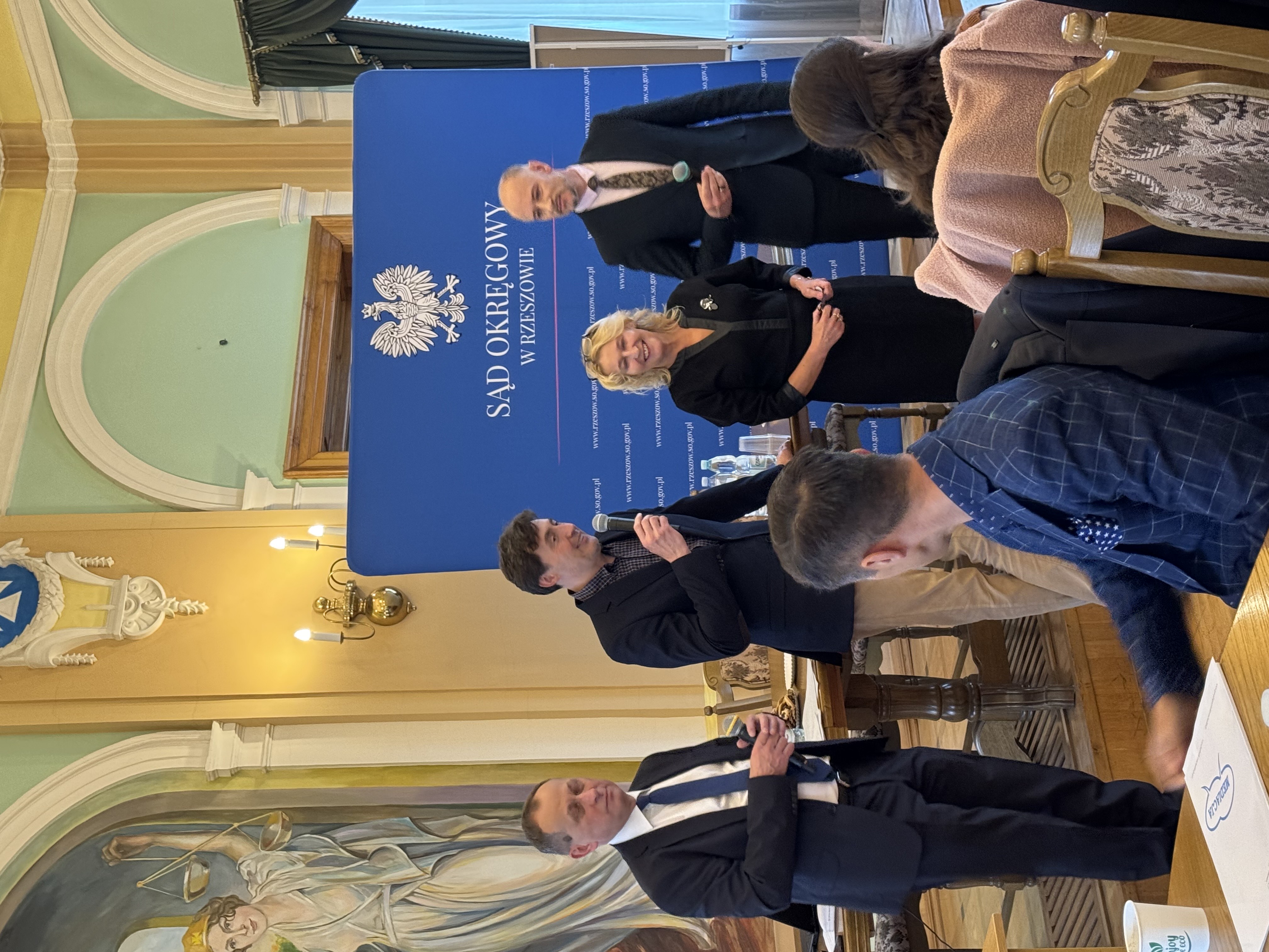 16 października 2025r. w Sądzie Okręgowym w Rzeszowie odbyła się konferencja pt. „Doświadczenia sędziów, mediatorów, prawników, pedagogów i studentów w stosowaniu mediacji na podkarpaciu.” pod honorowym patronatem Ministerstwa Sprawiedliwości, Prezesa Sądu Apelacyjnego w Rzeszowie i Podkarpackiego Kuratora Oświaty. Konferencję otworzył Wiceprezes Sądu Okręgowego w Rzeszowie Pan Andrzej Borek. Do uczestników konferencji przemówił Wiceprezes Sądu Apelacyjnego w Rzeszowie Pan Bogdan Ziemiański oraz II Wicekurator Oświaty Pan Grzegorz Patruś.