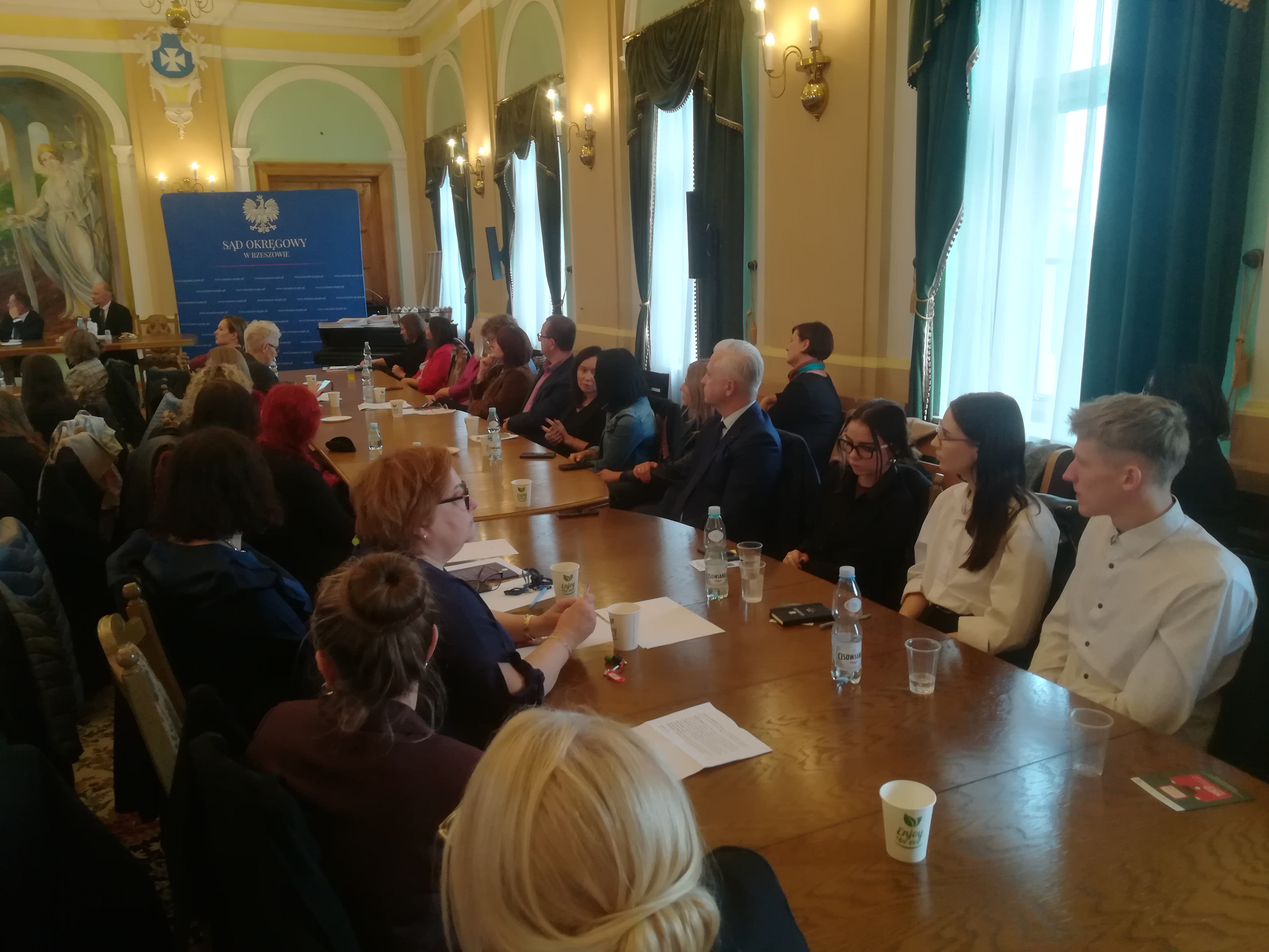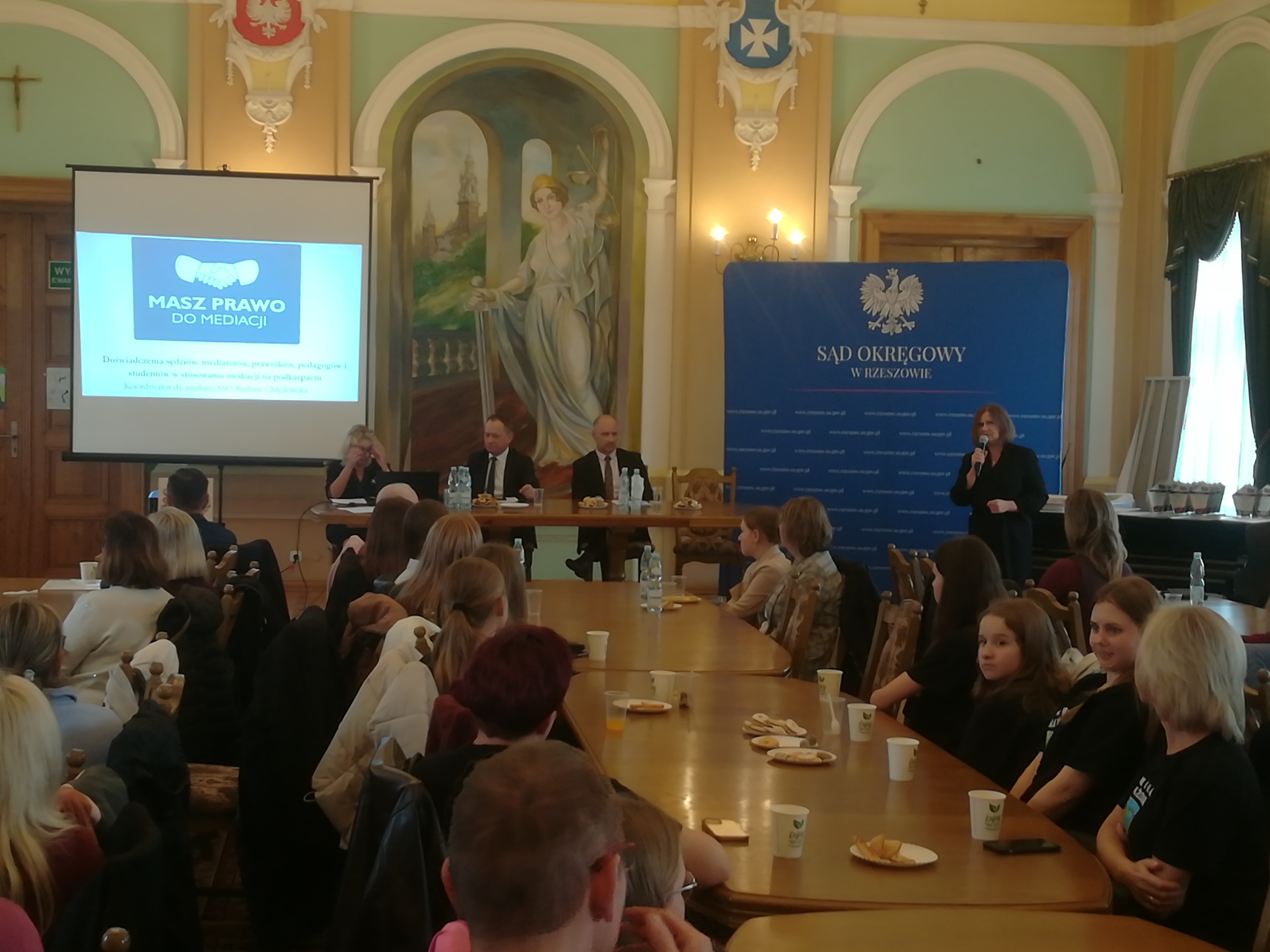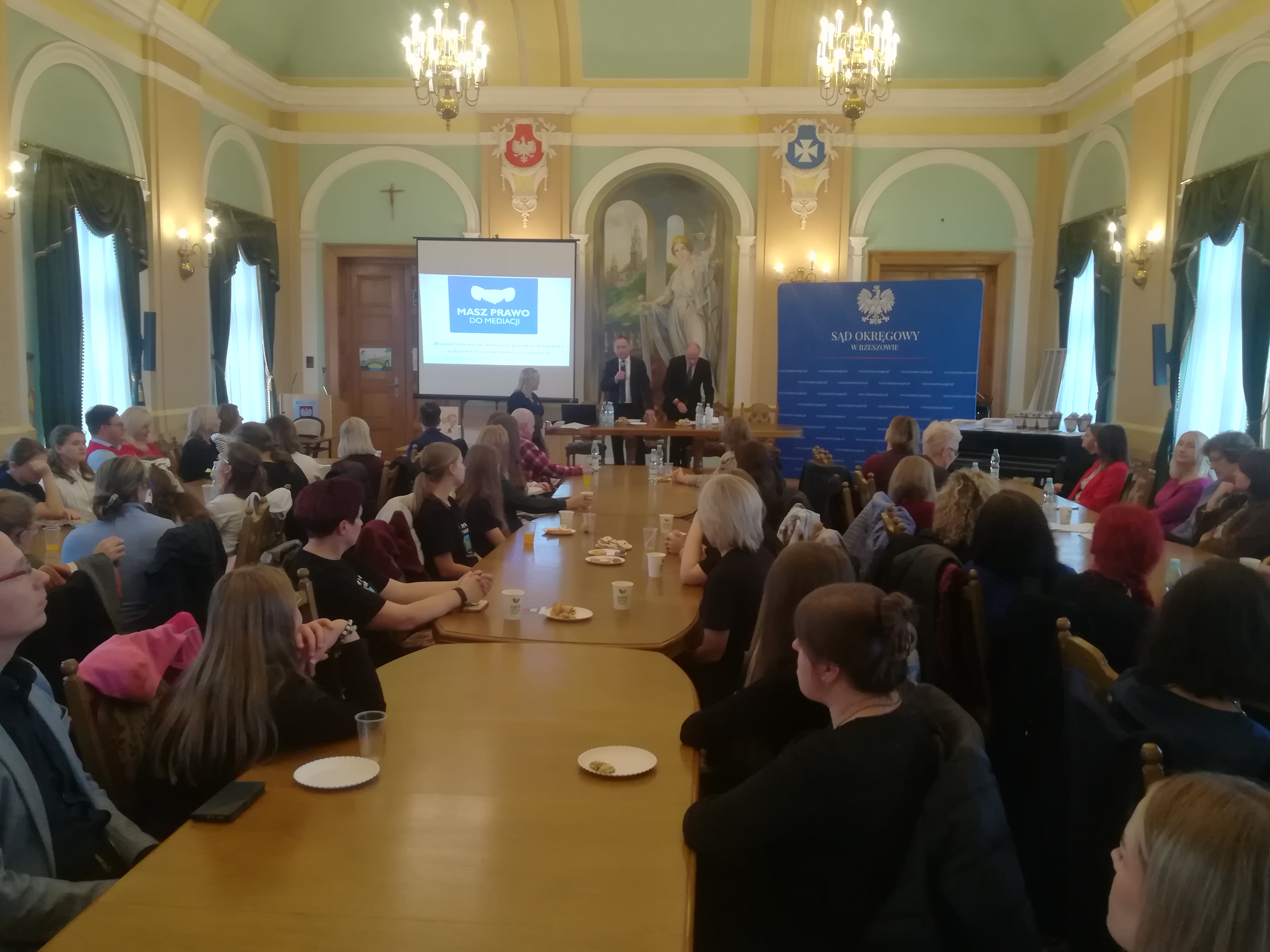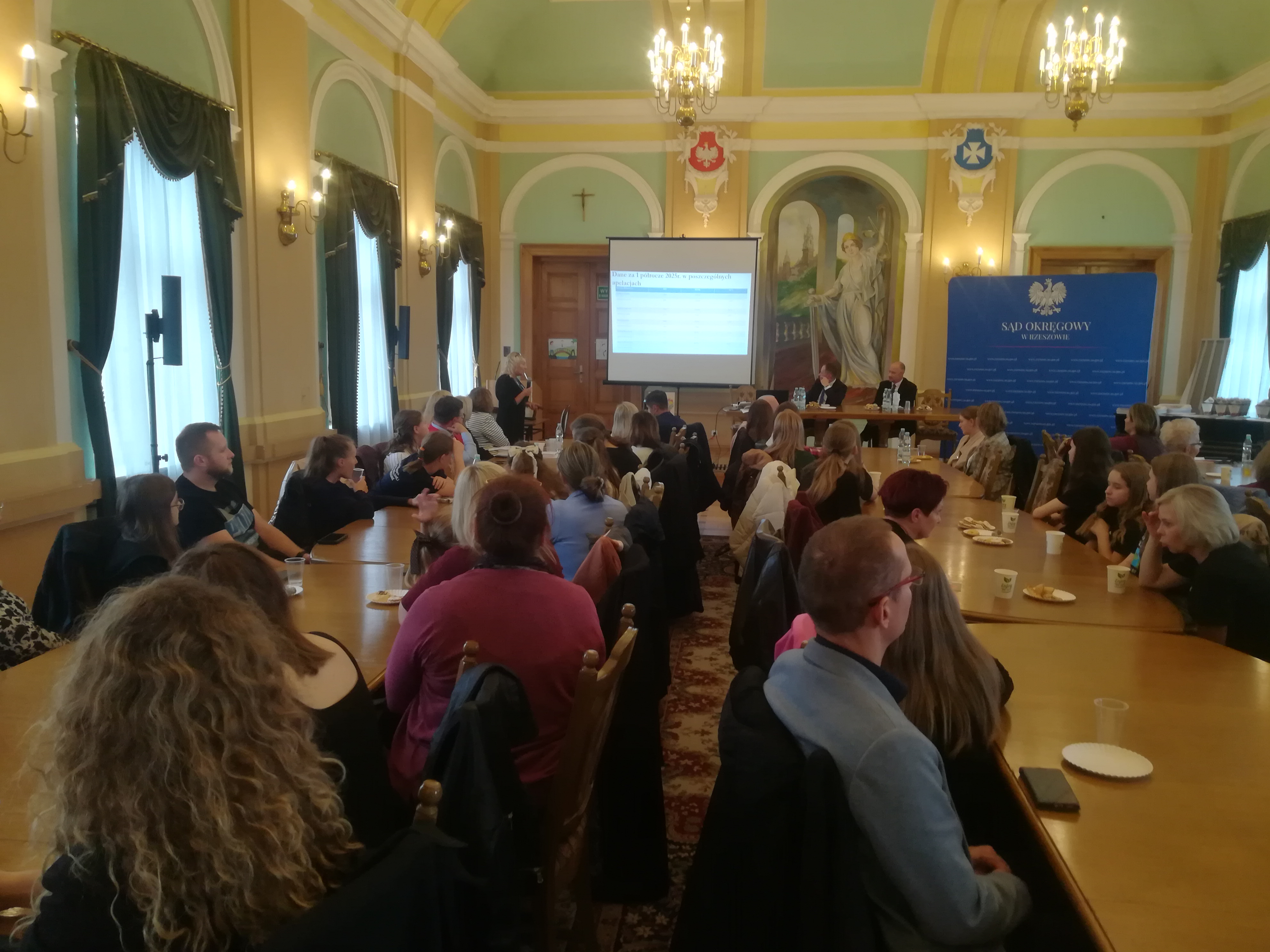 16 października 2025r. w Sądzie Okręgowym w Rzeszowie odbyła się konferencja pt. „Doświadczenia sędziów, mediatorów, prawników, pedagogów i studentów w stosowaniu mediacji na podkarpaciu.” pod honorowym patronatem Ministerstwa Sprawiedliwości, Prezesa Sądu Apelacyjnego w Rzeszowie i Podkarpackiego Kuratora Oświaty. Konferencję otworzył Wiceprezes Sądu Okręgowego w Rzeszowie Pan Andrzej Borek. Do uczestników konferencji przemówił Wiceprezes Sądu Apelacyjnego w Rzeszowie Pan Bogdan Ziemiański oraz II Wicekurator Oświaty Pan Grzegorz Patruś.