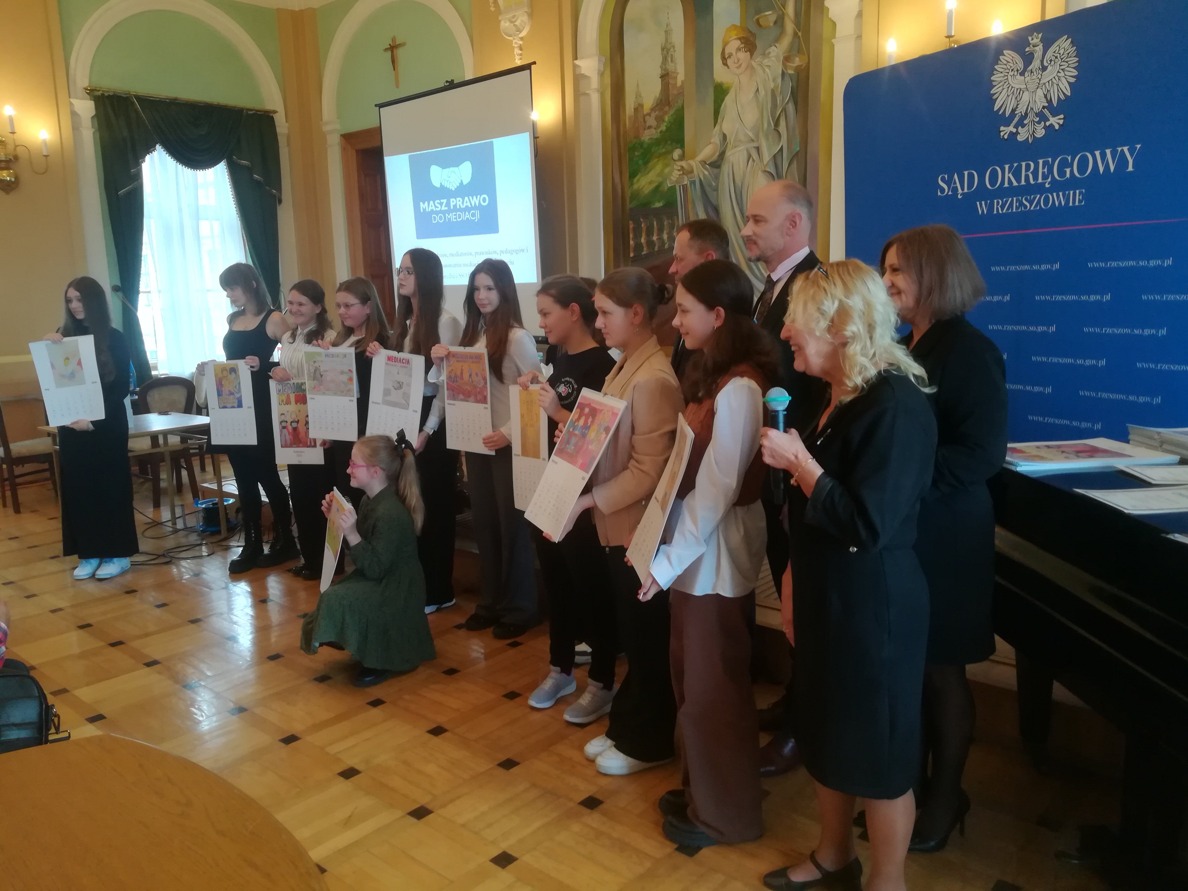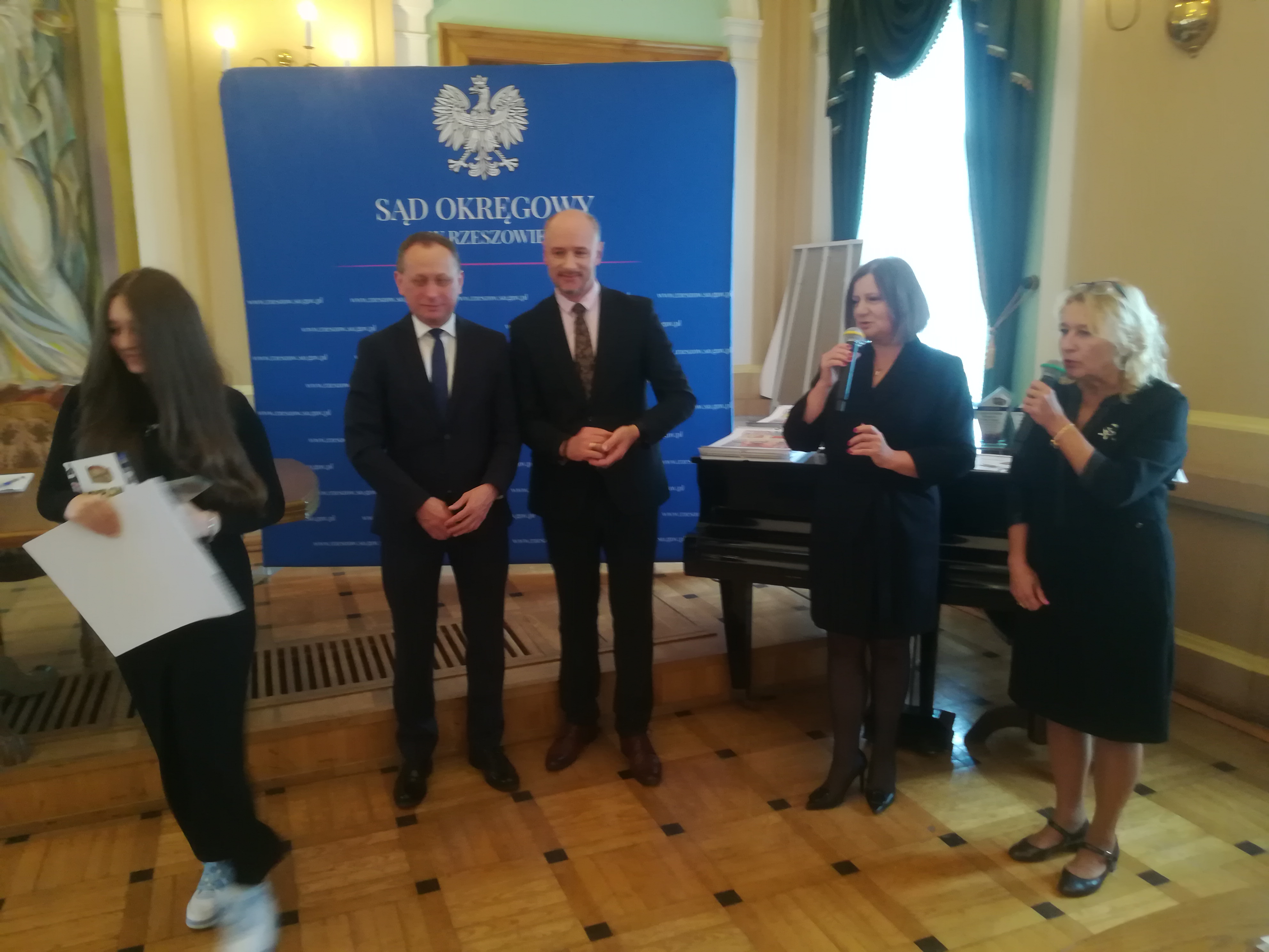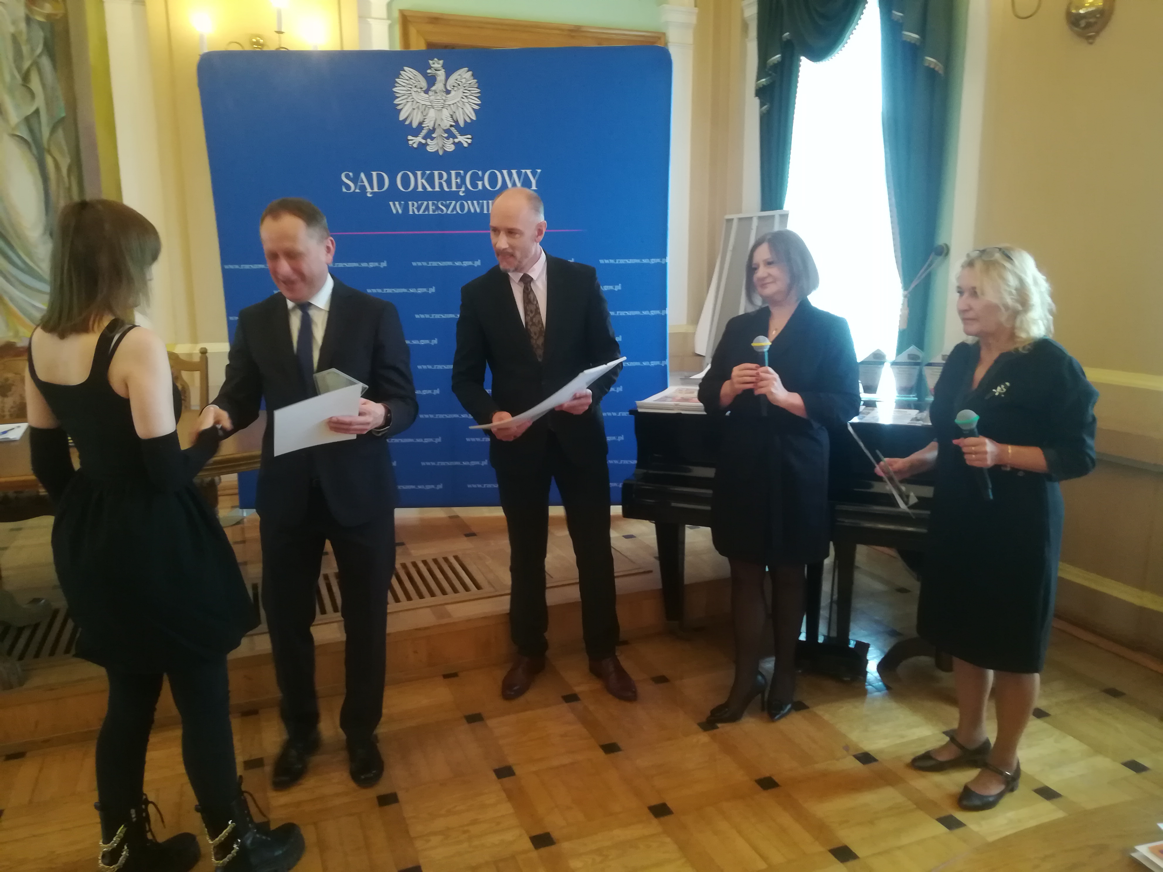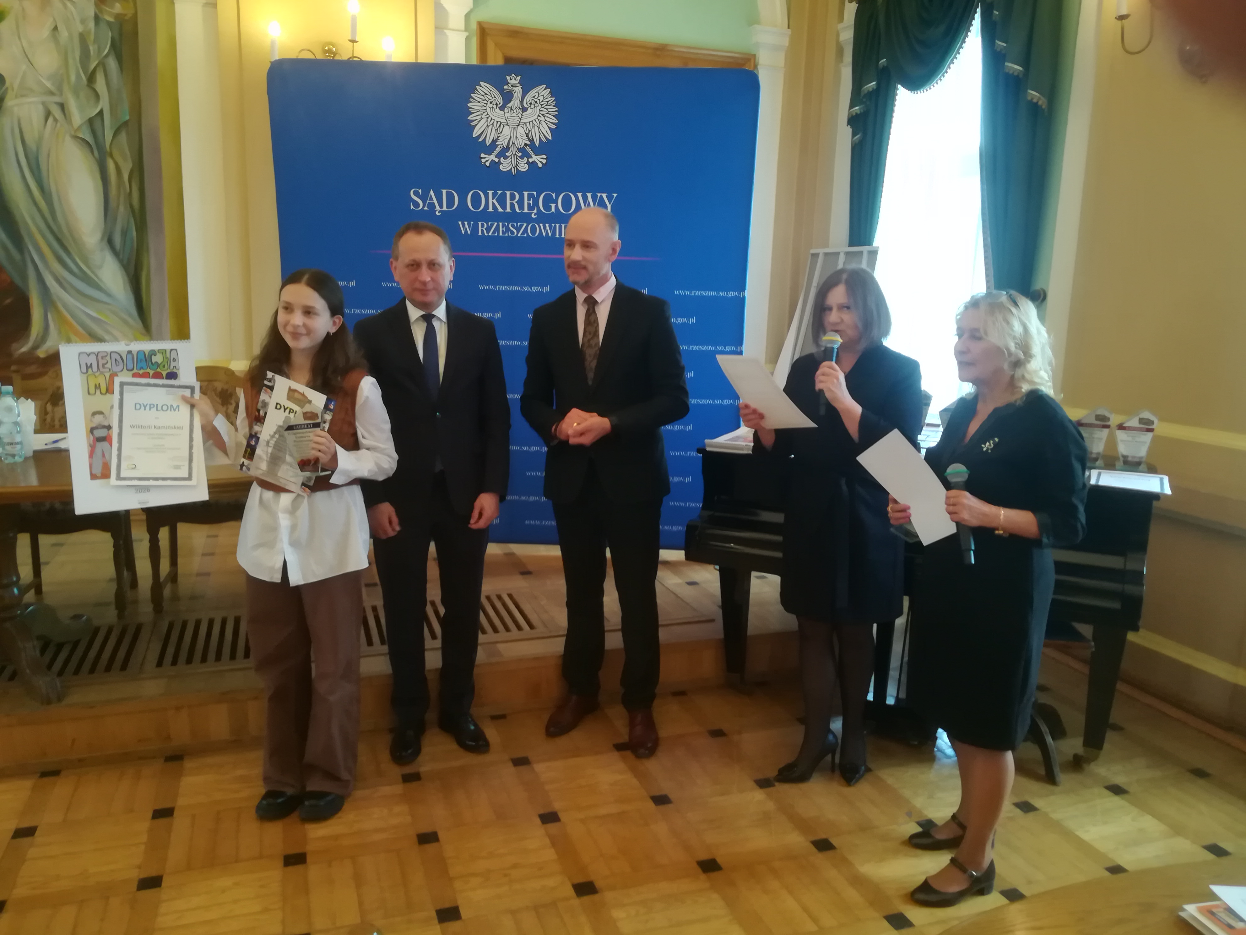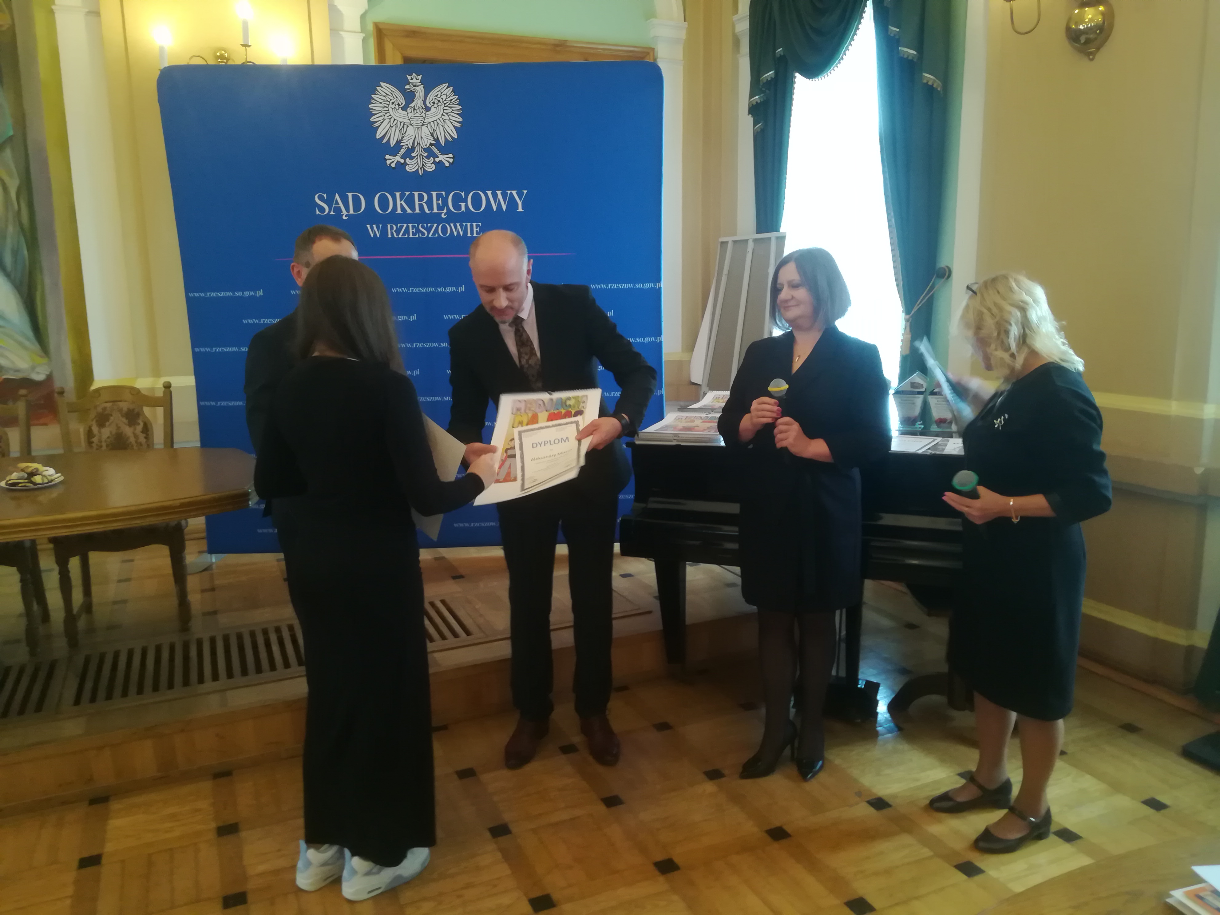 Podczas konferencji wręczono nagrody zwycięzcom VI Ogólnopolskiego konkursu plastycznego i V Ogólnopolskiego konkursu na symulację mediacji organizowanego przez Podkarpackiego Kuratora Oświaty oraz Sąd Okręgowy