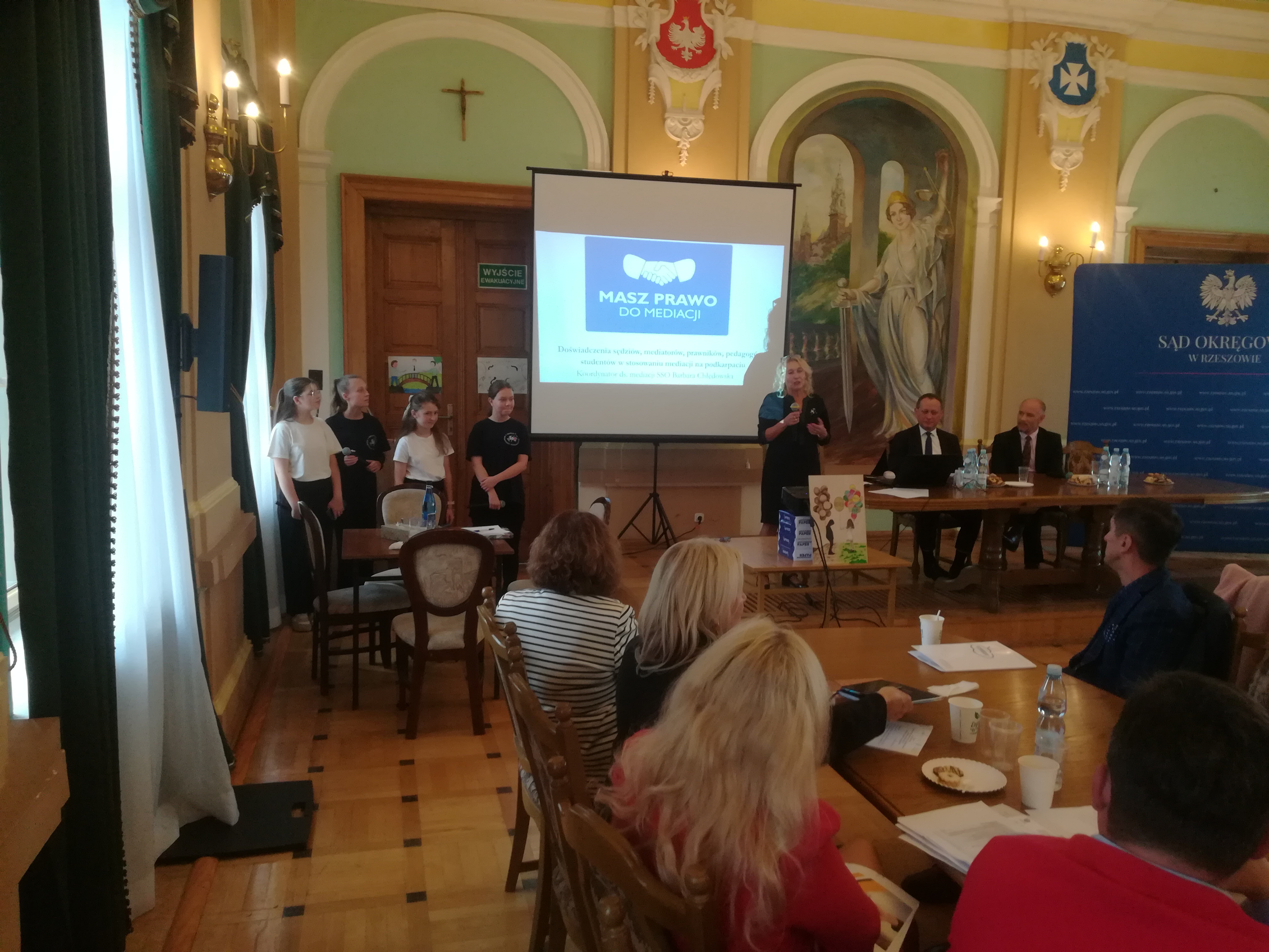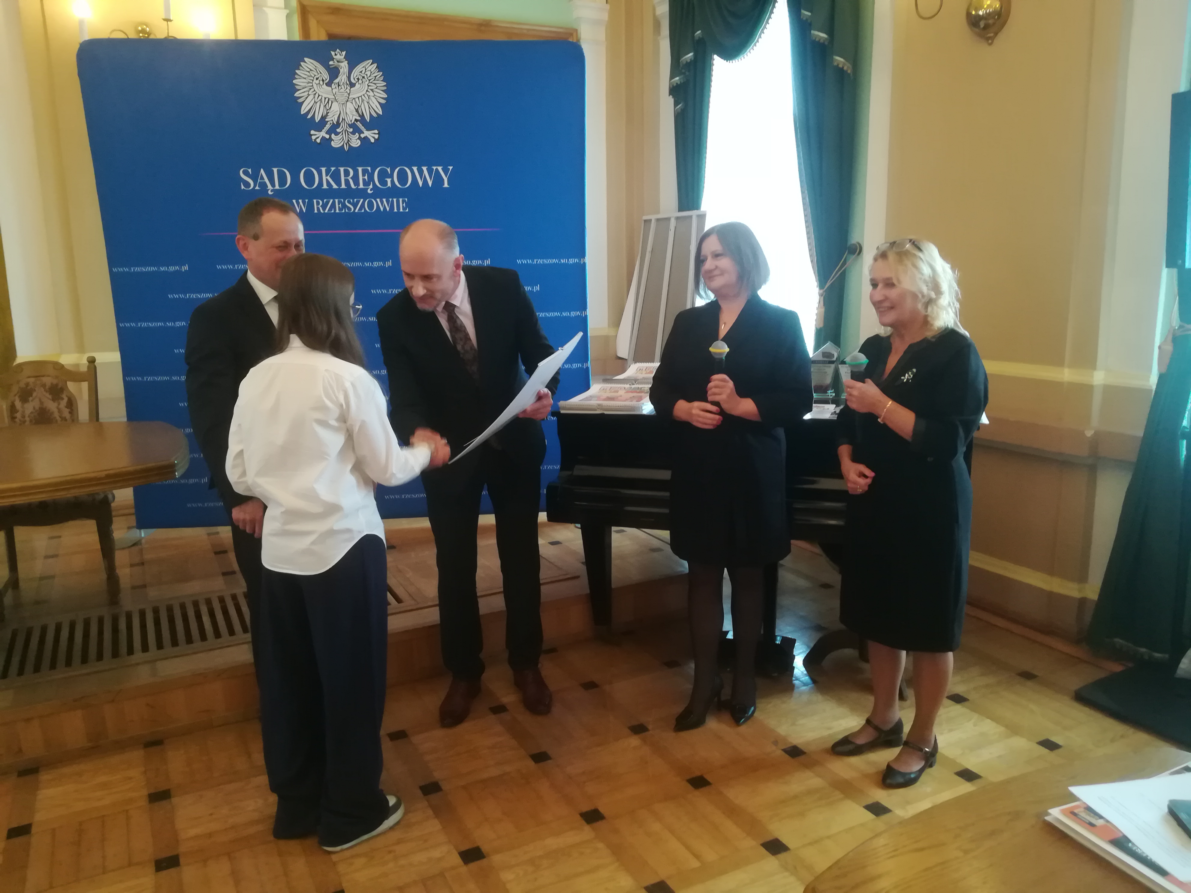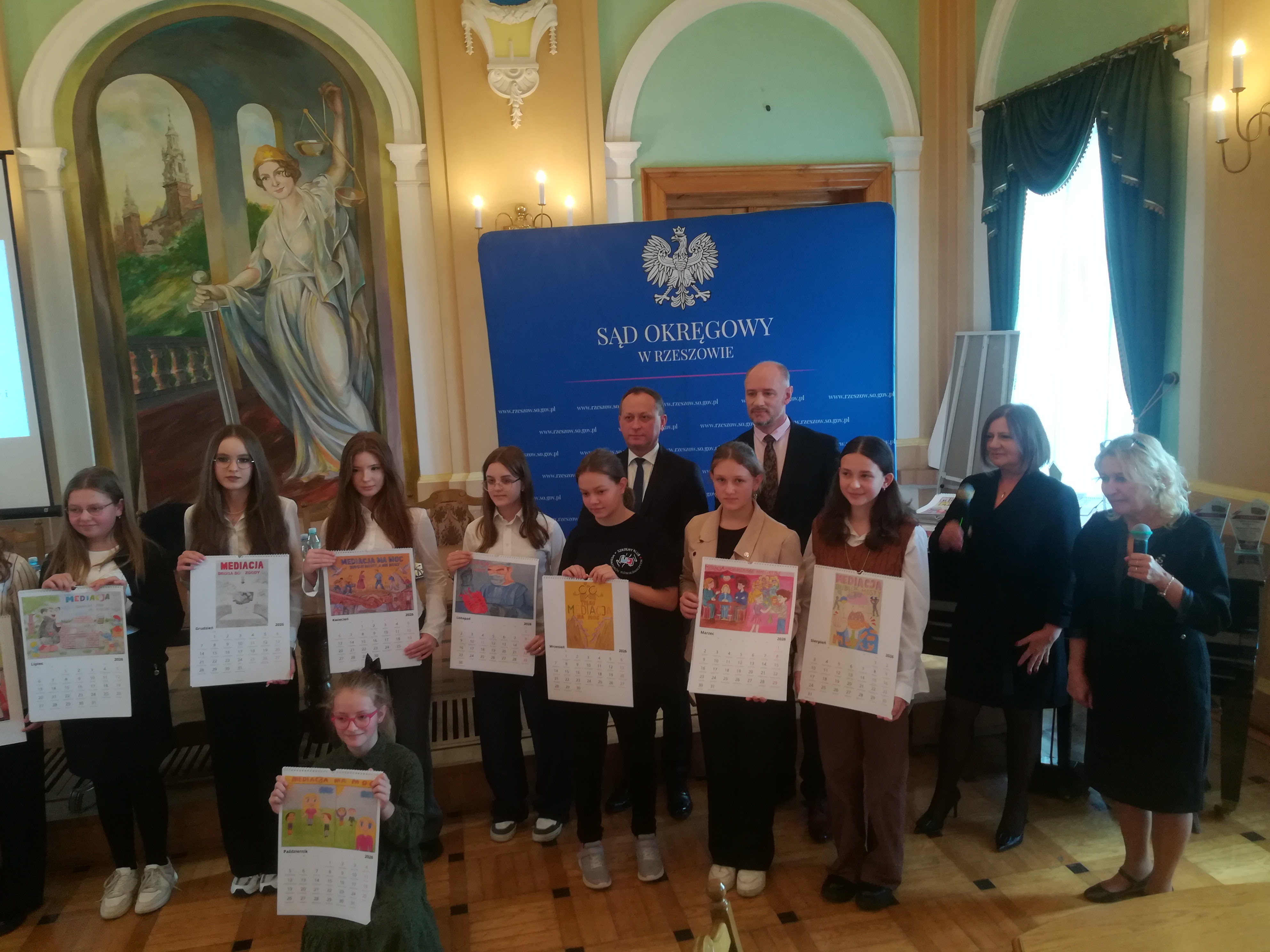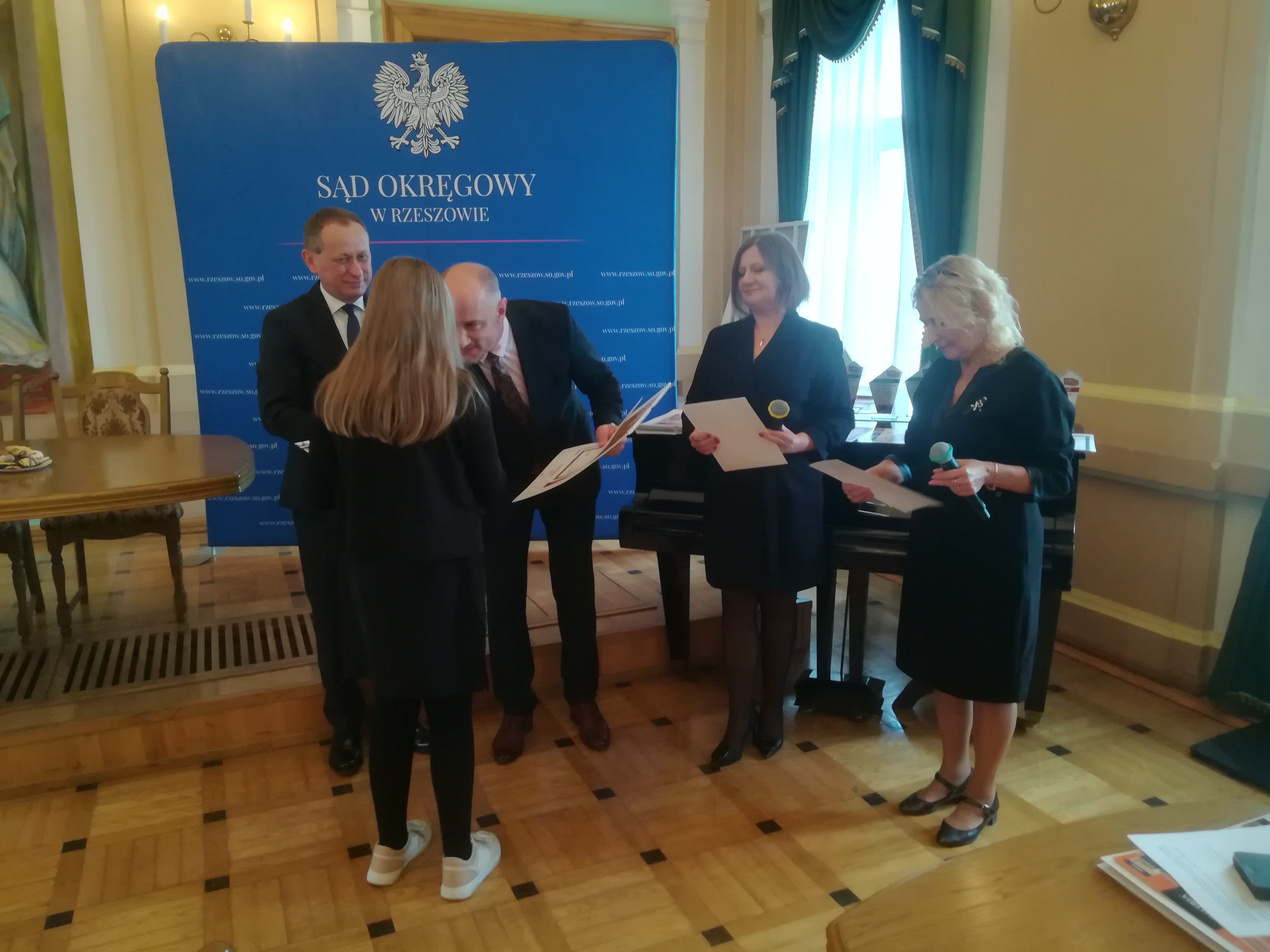 Podczas konferencji wręczono nagrody zwycięzcom VI Ogólnopolskiego konkursu plastycznego i V Ogólnopolskiego konkursu na symulację mediacji organizowanego przez Podkarpackiego Kuratora Oświaty oraz Sąd Okręgowy
