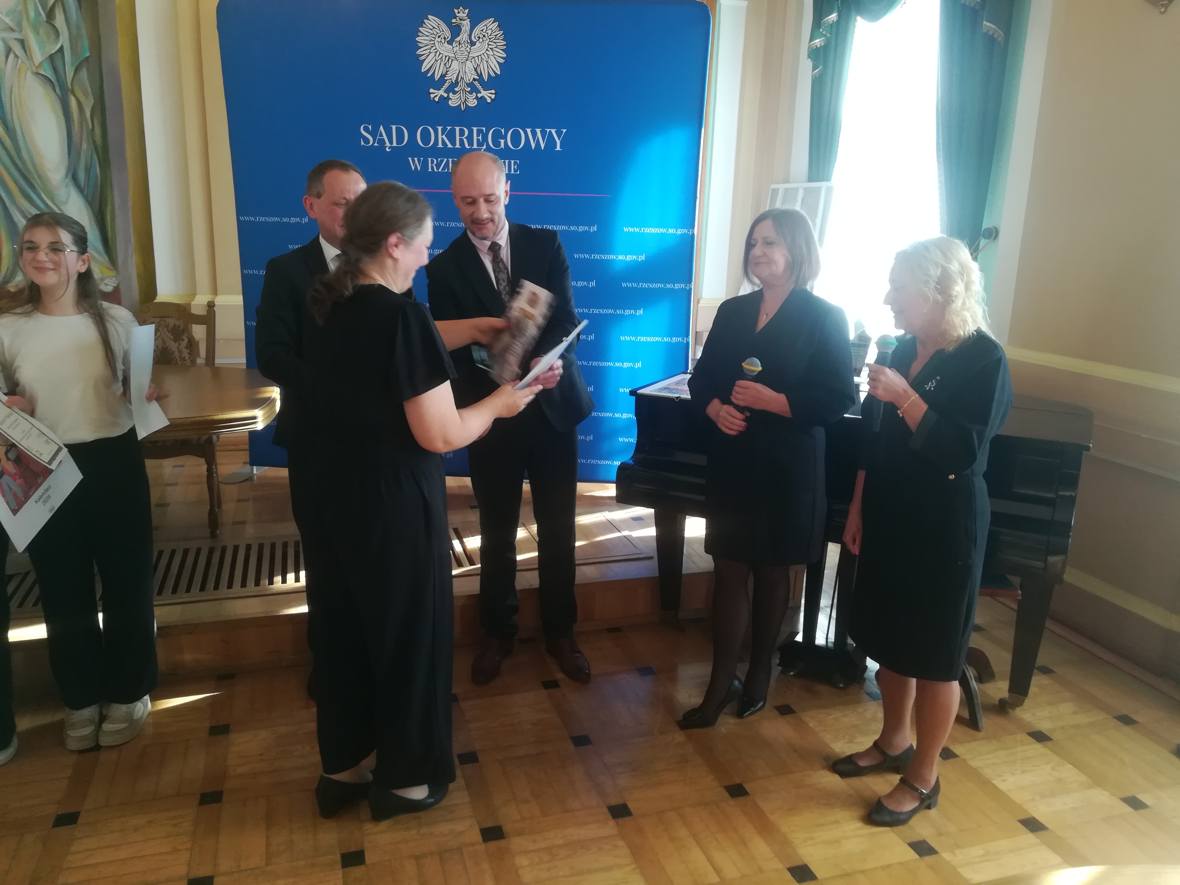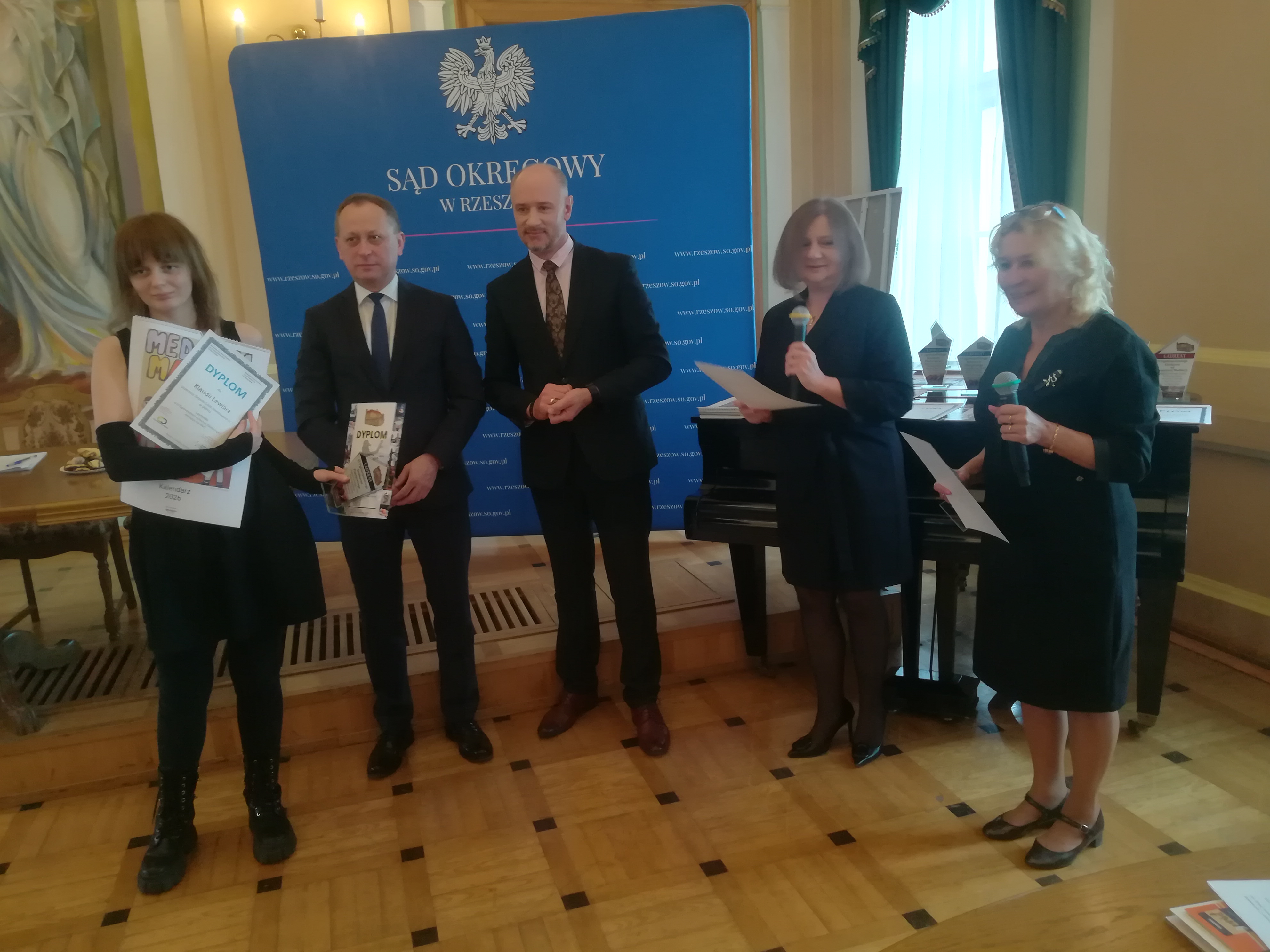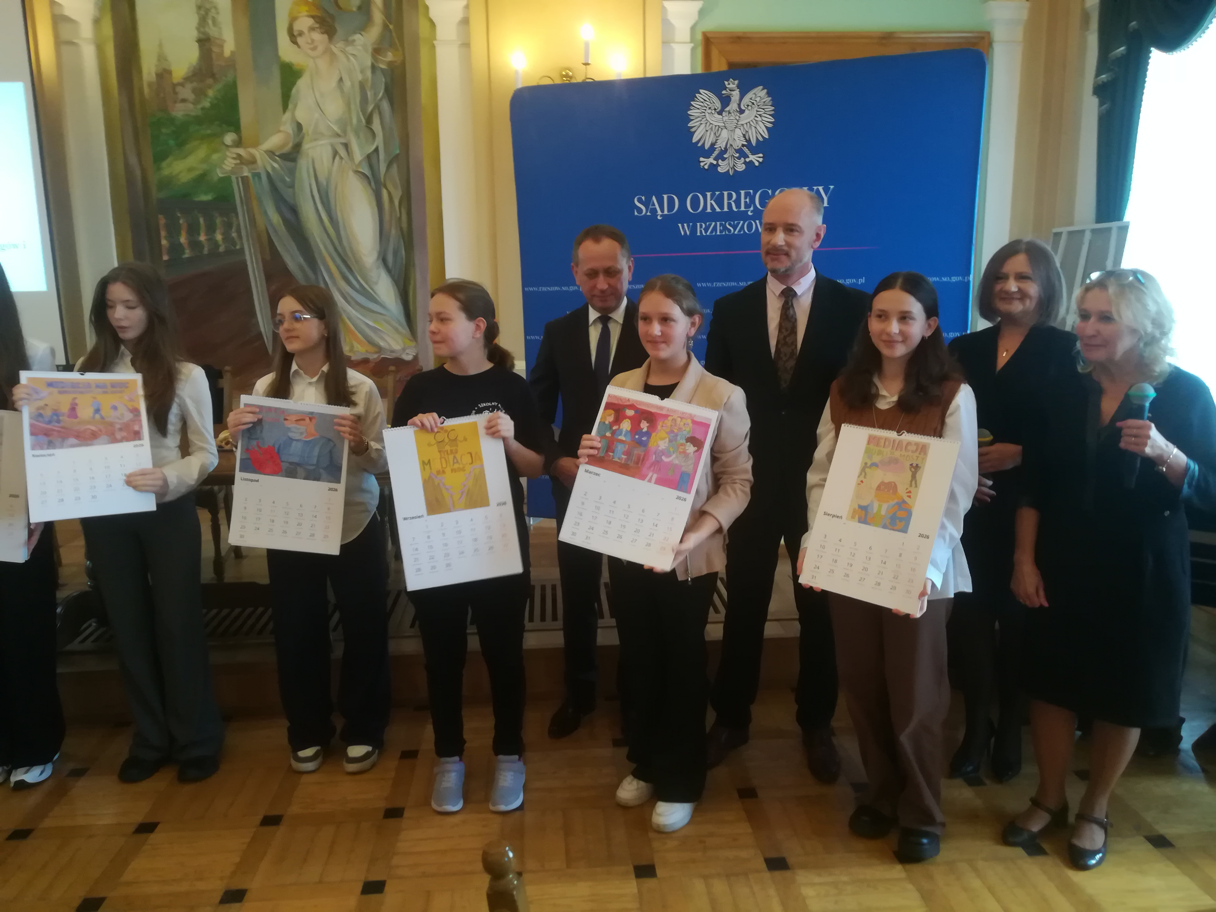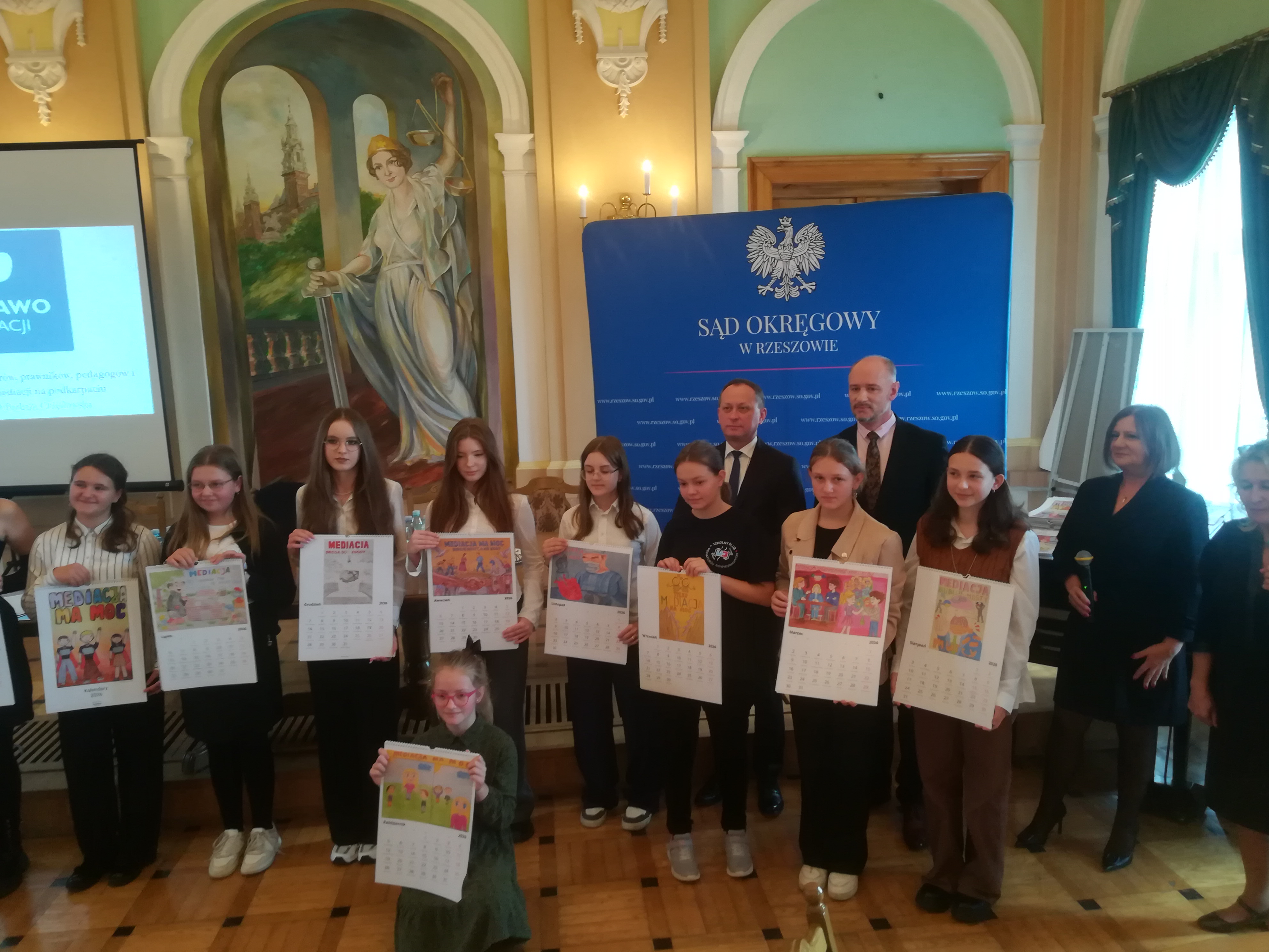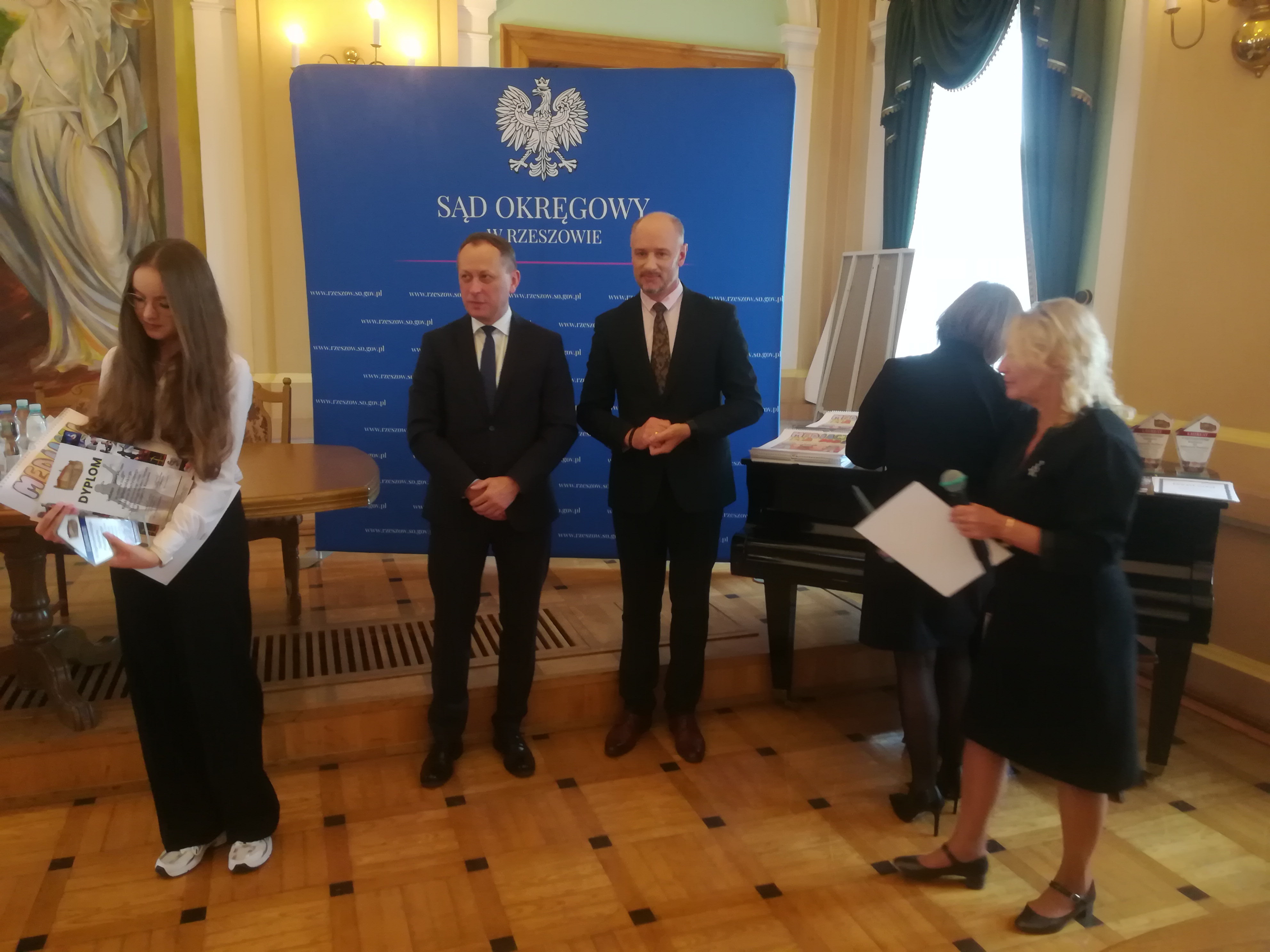 Podczas konferencji wręczono nagrody zwycięzcom VI Ogólnopolskiego konkursu plastycznego i V Ogólnopolskiego konkursu na symulację mediacji organizowanego przez Podkarpackiego Kuratora Oświaty oraz Sąd Okręgowy