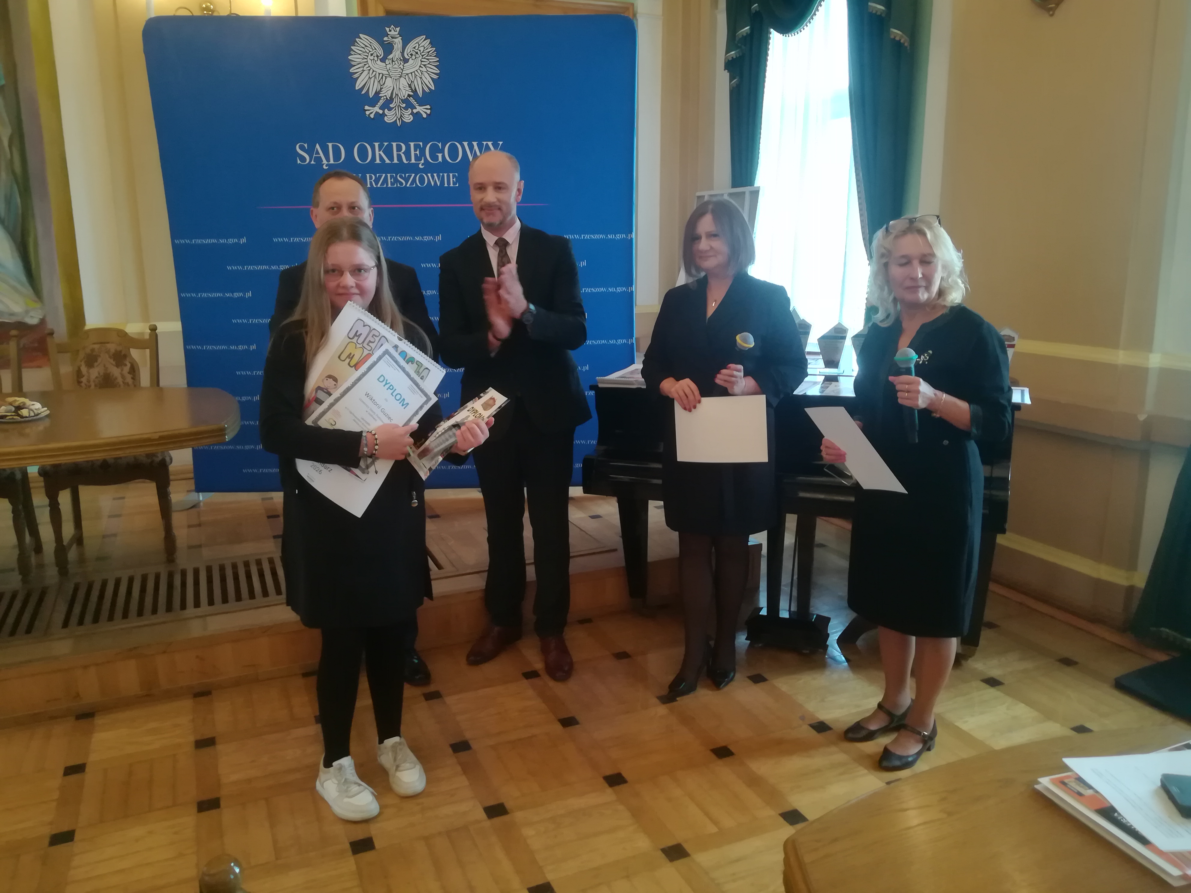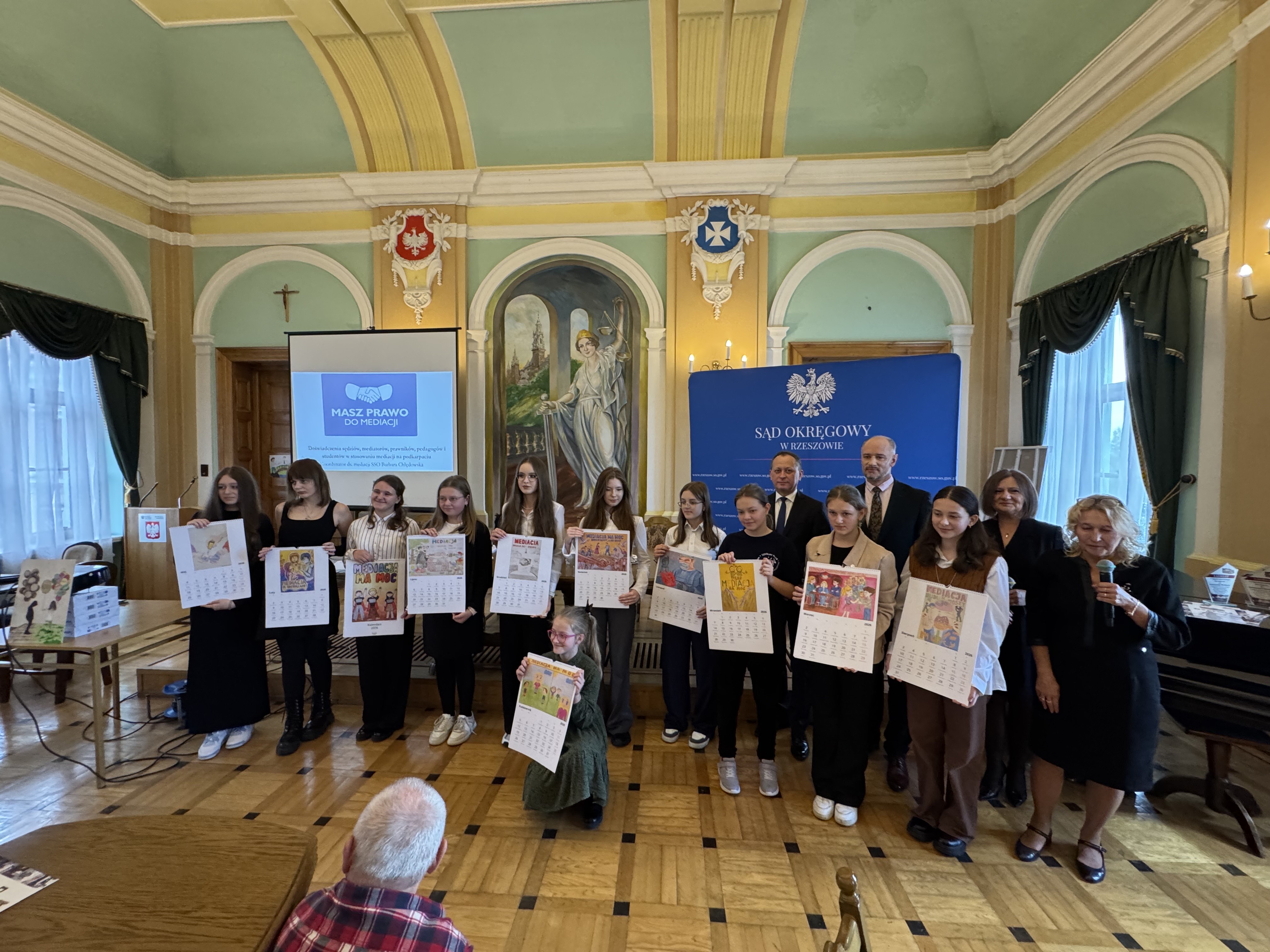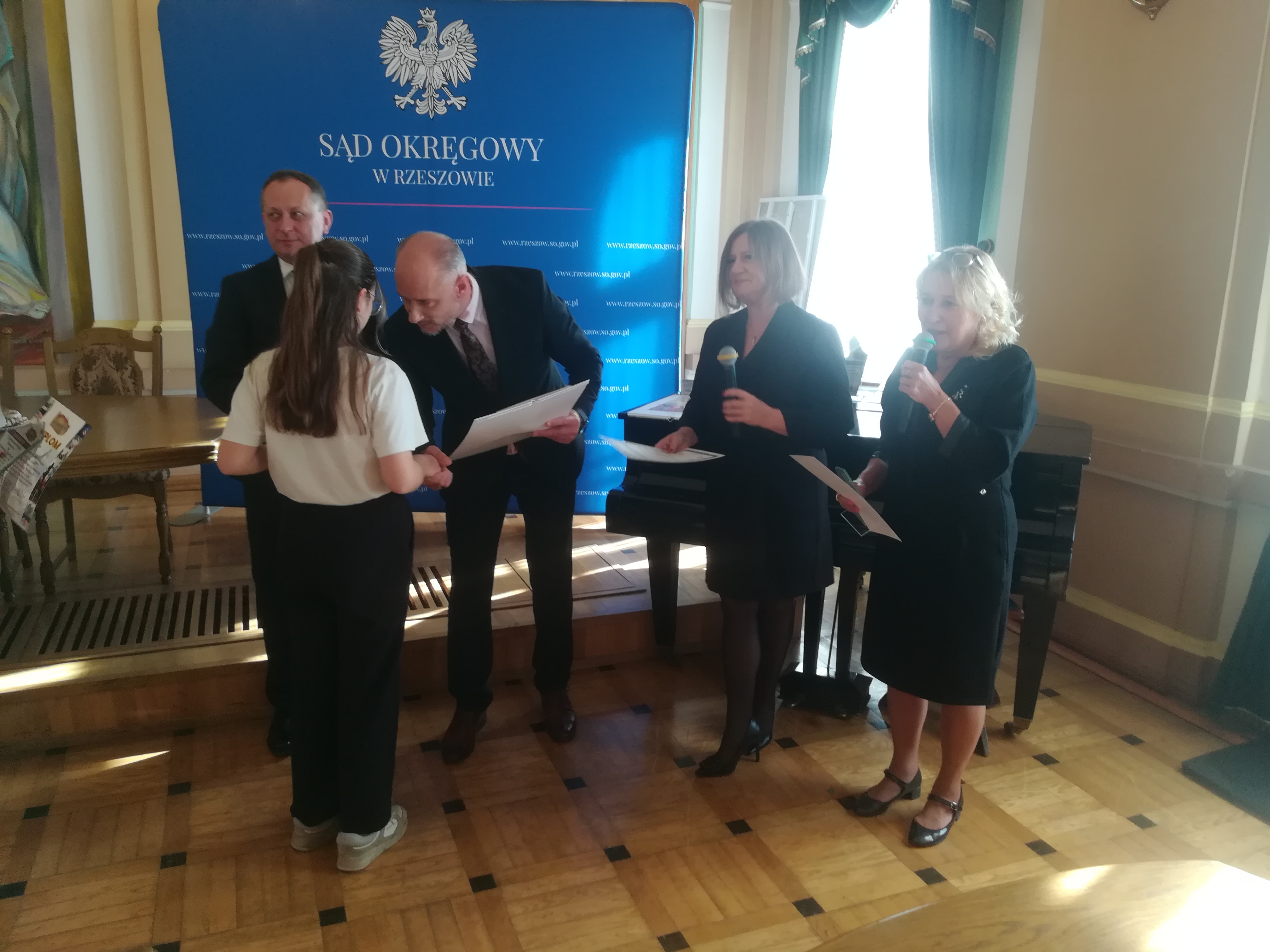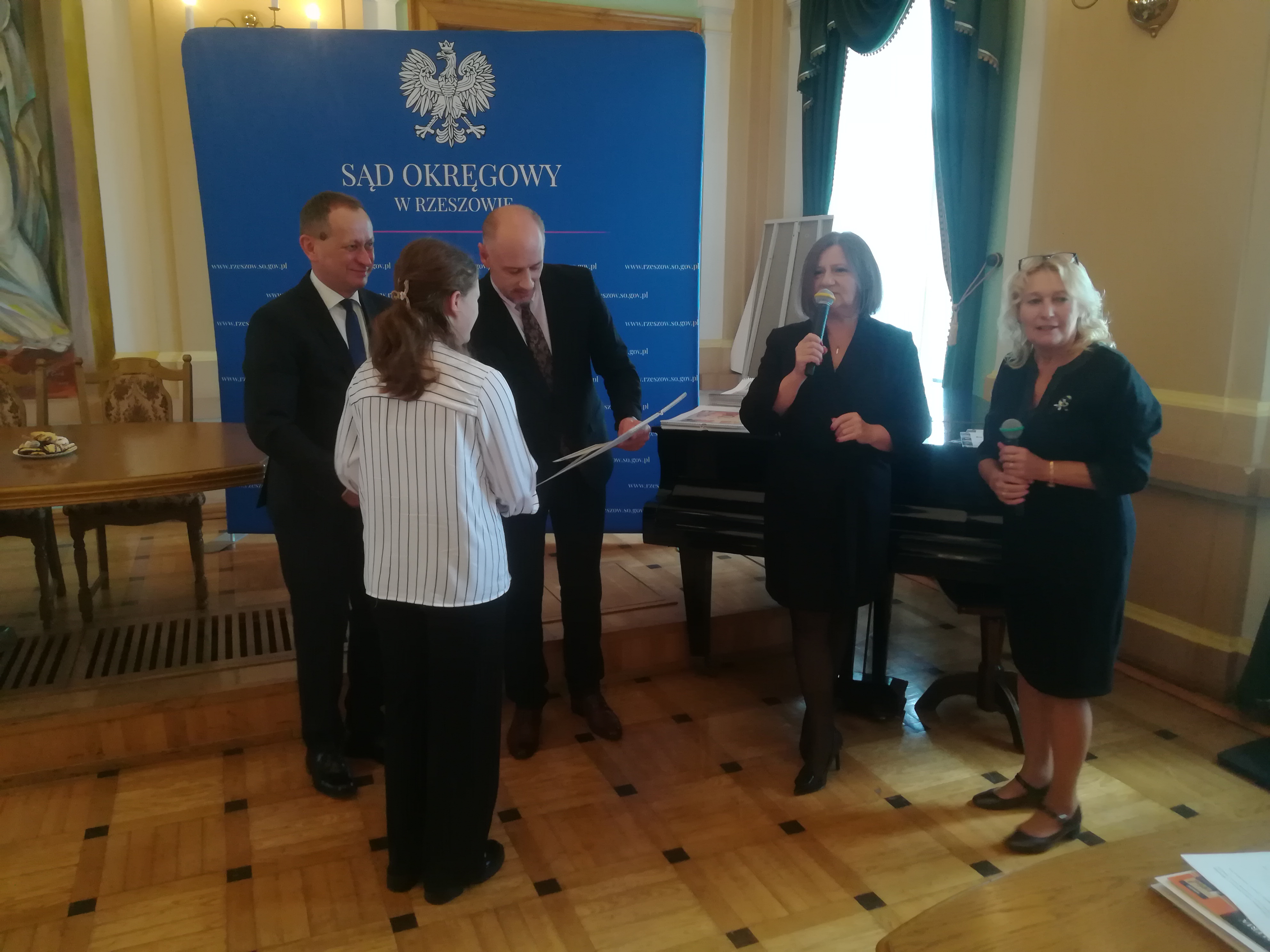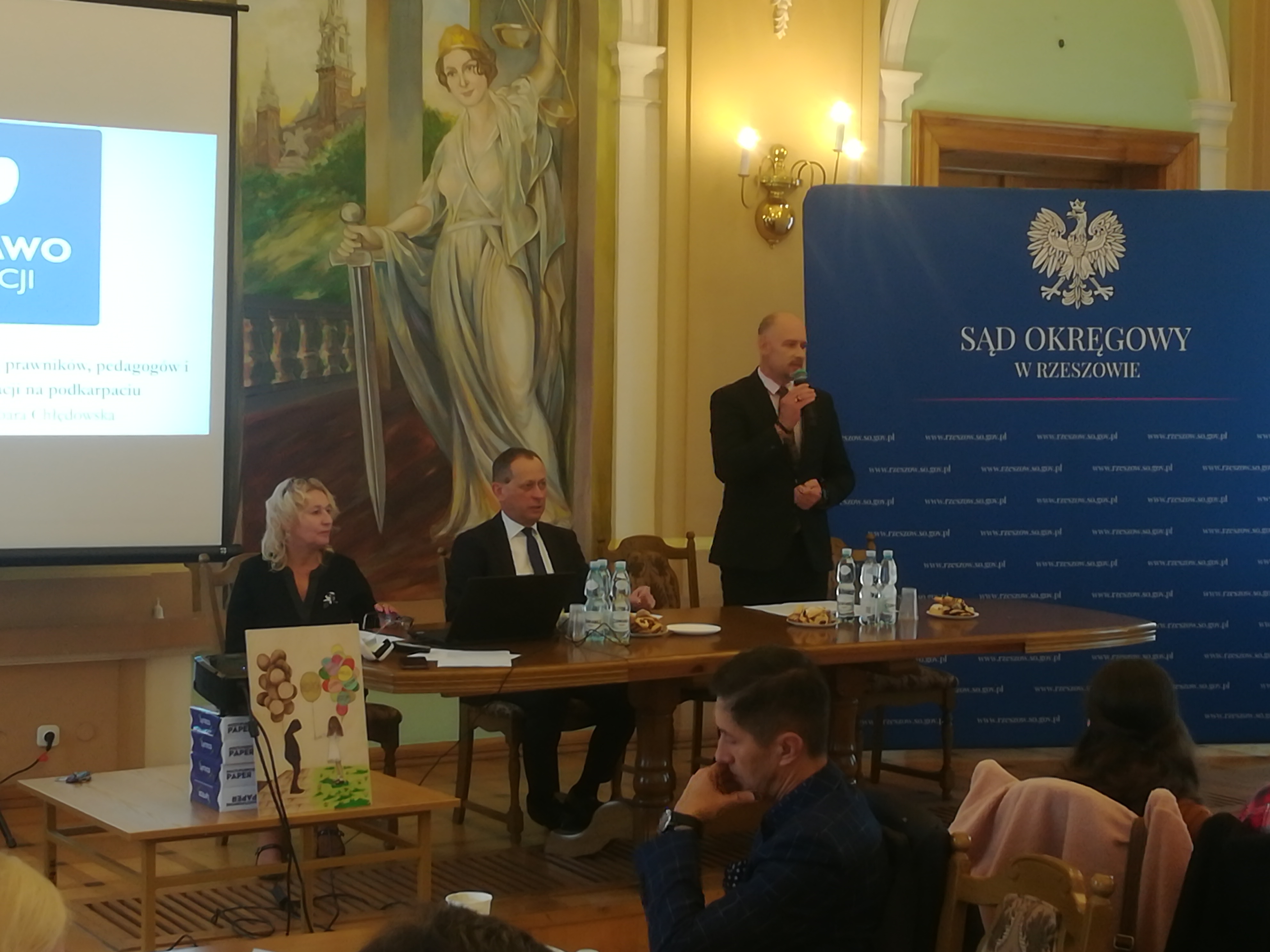 Podczas konferencji wręczono nagrody zwycięzcom VI Ogólnopolskiego konkursu plastycznego i V Ogólnopolskiego konkursu na symulację mediacji organizowanego przez Podkarpackiego Kuratora Oświaty oraz Sąd Okręgowy