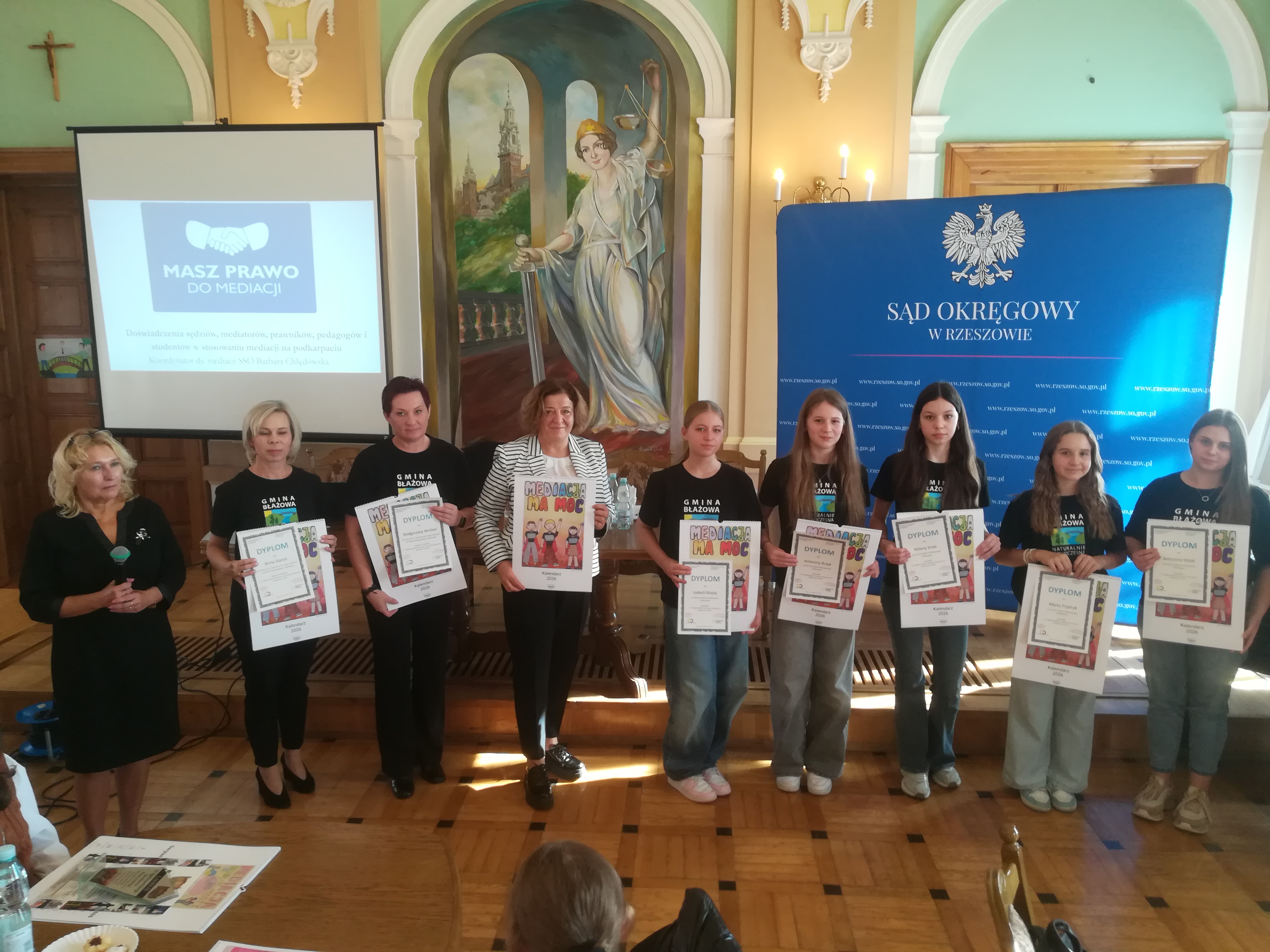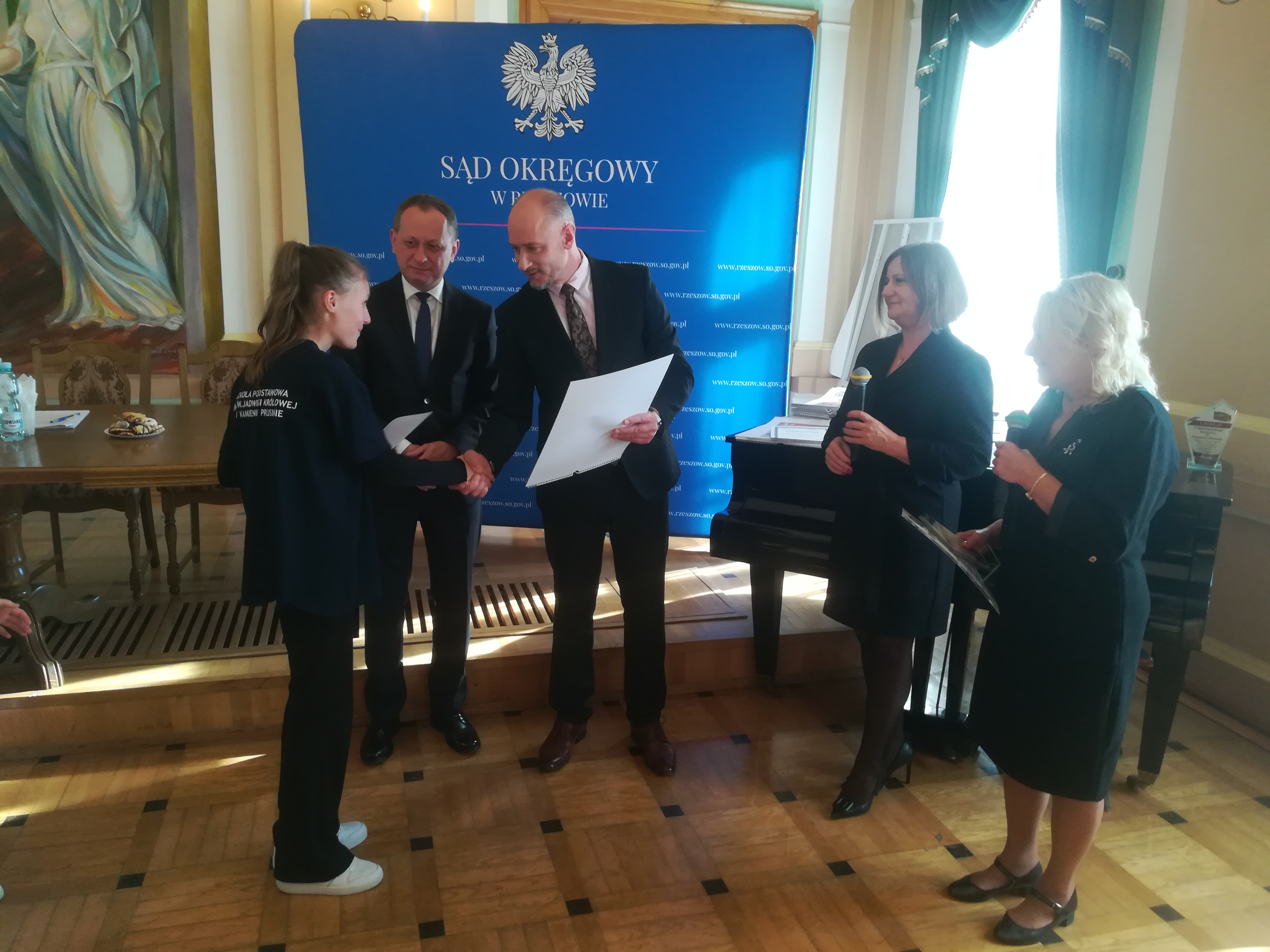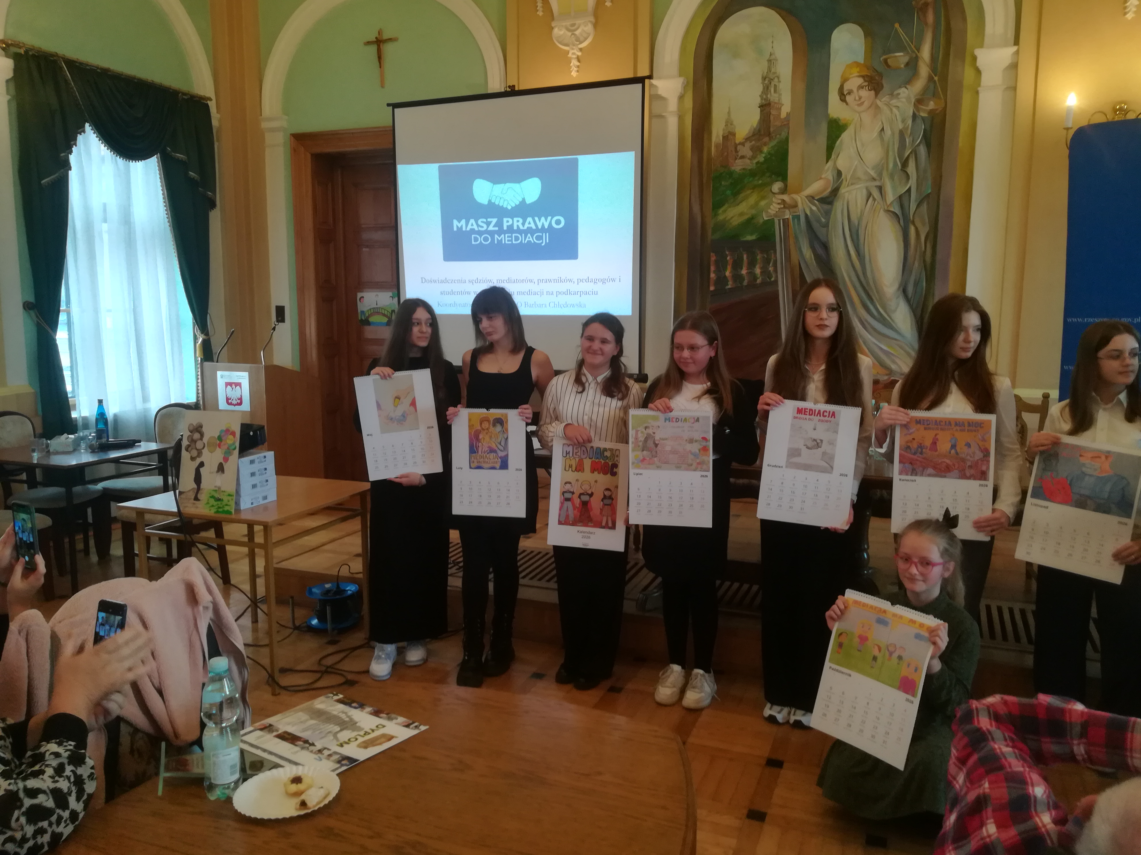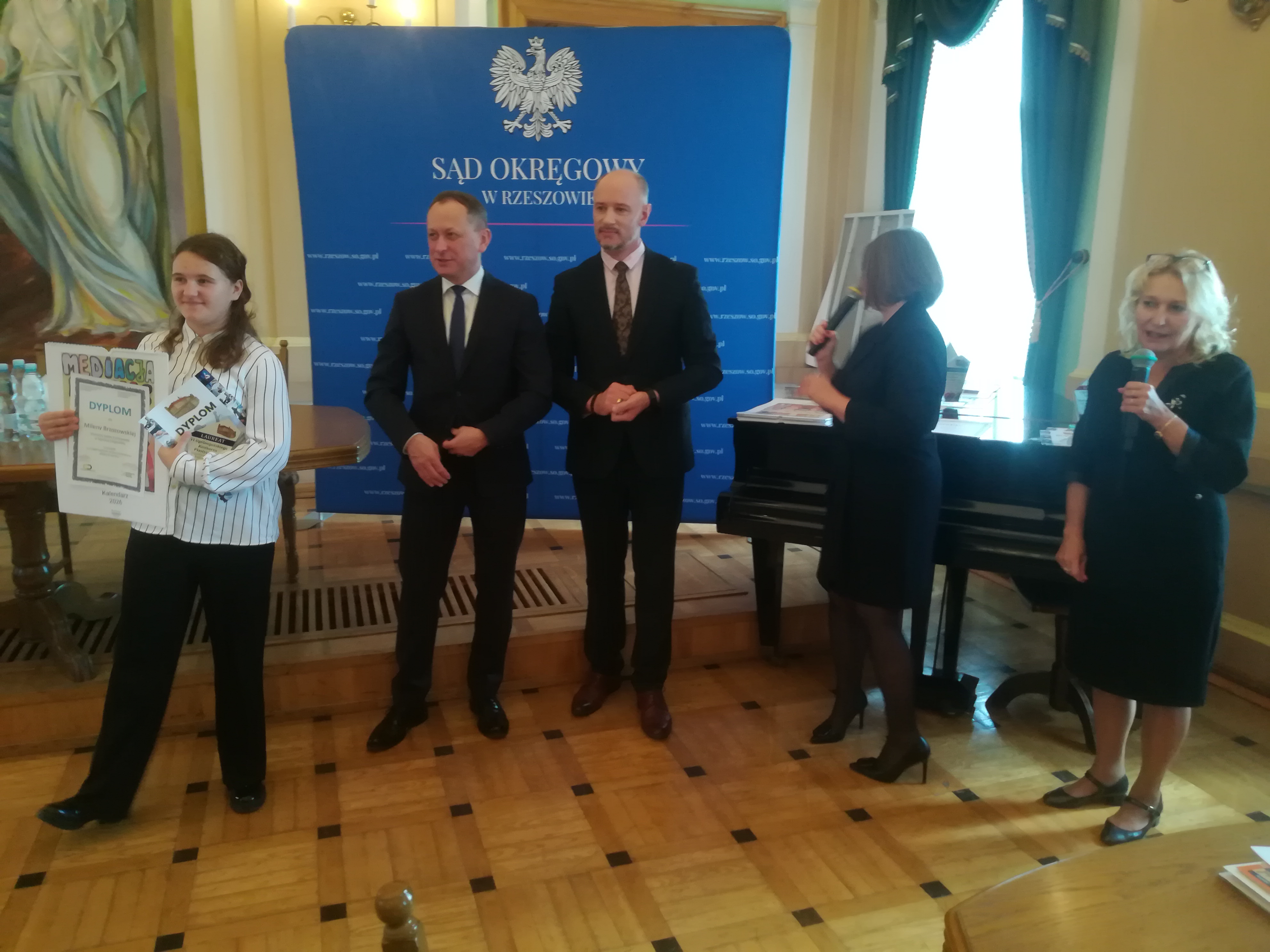 Podczas konferencji wręczono nagrody zwycięzcom VI Ogólnopolskiego konkursu plastycznego i V Ogólnopolskiego konkursu na symulację mediacji organizowanego przez Podkarpackiego Kuratora Oświaty oraz Sąd Okręgowy