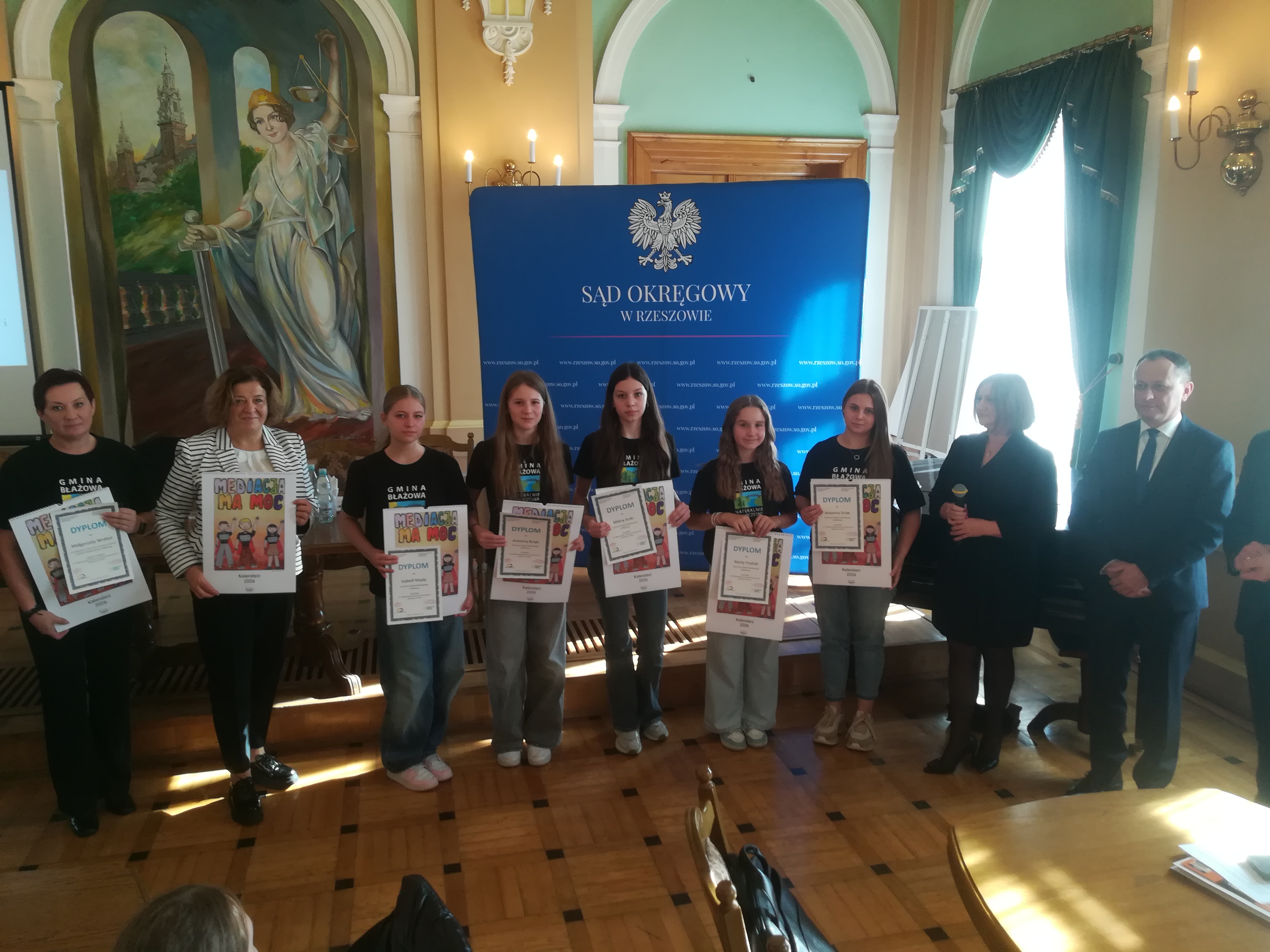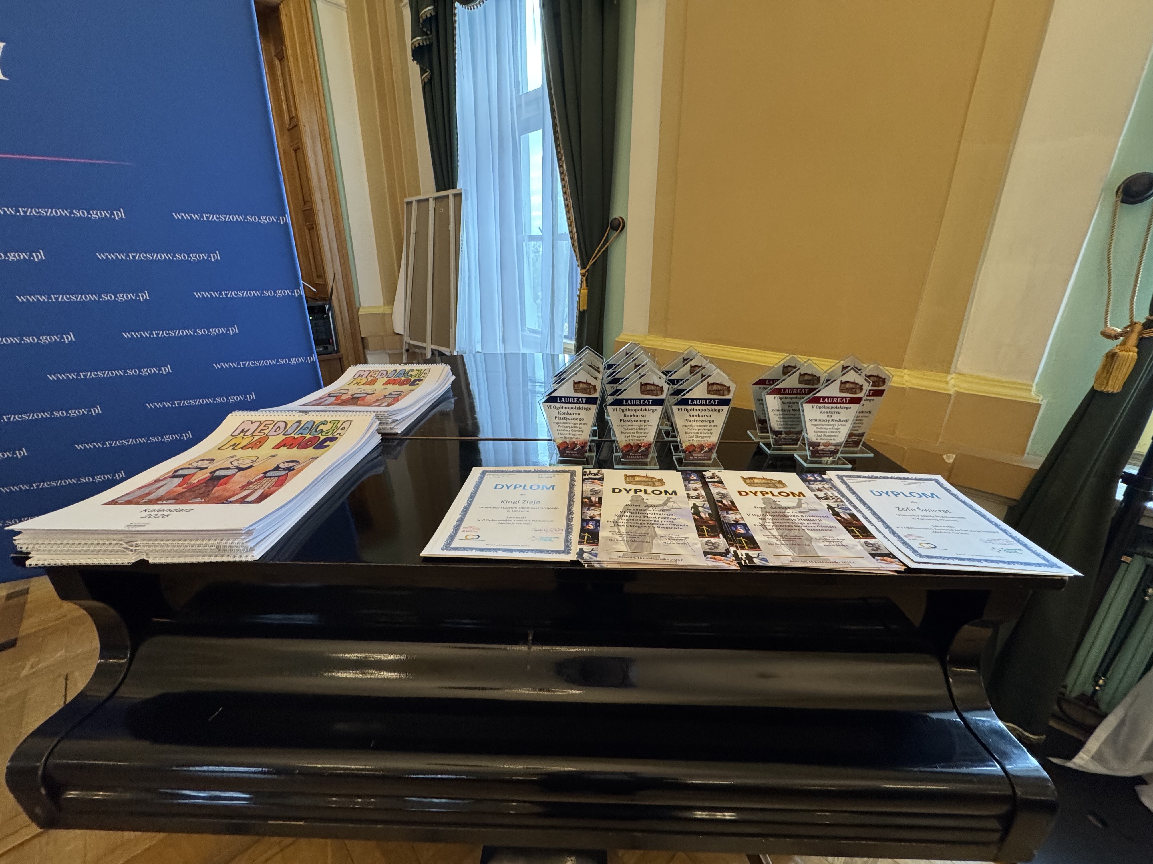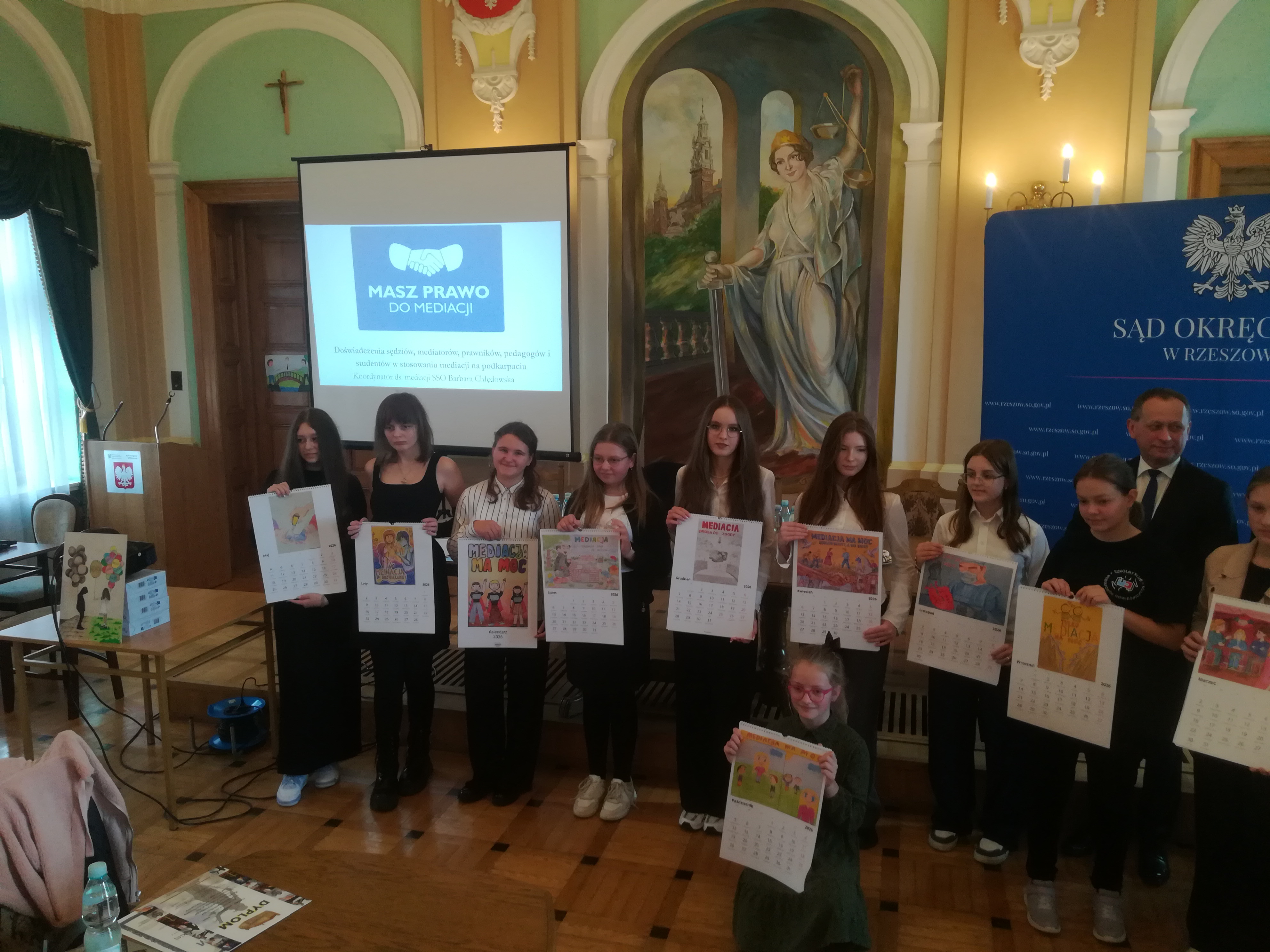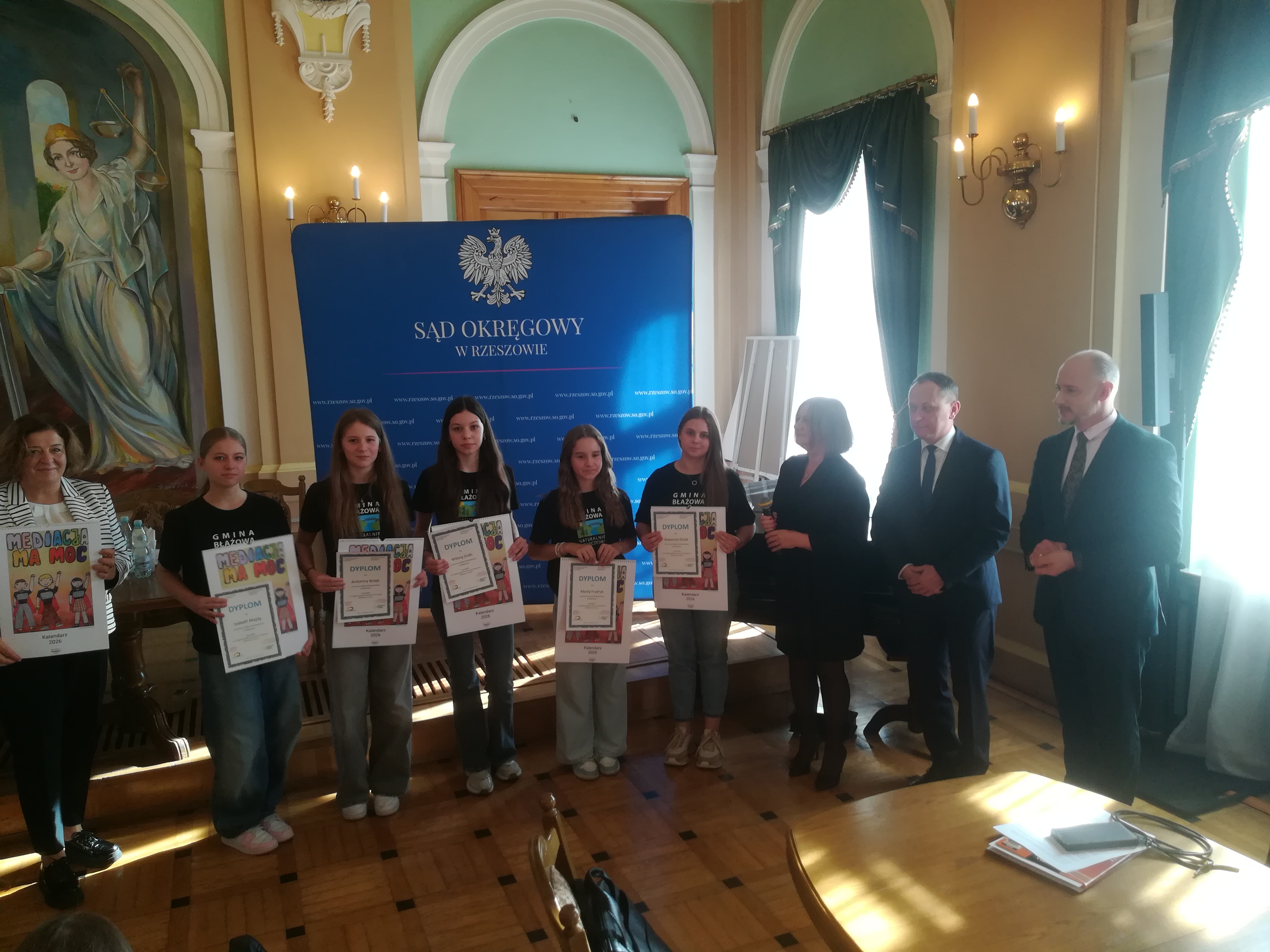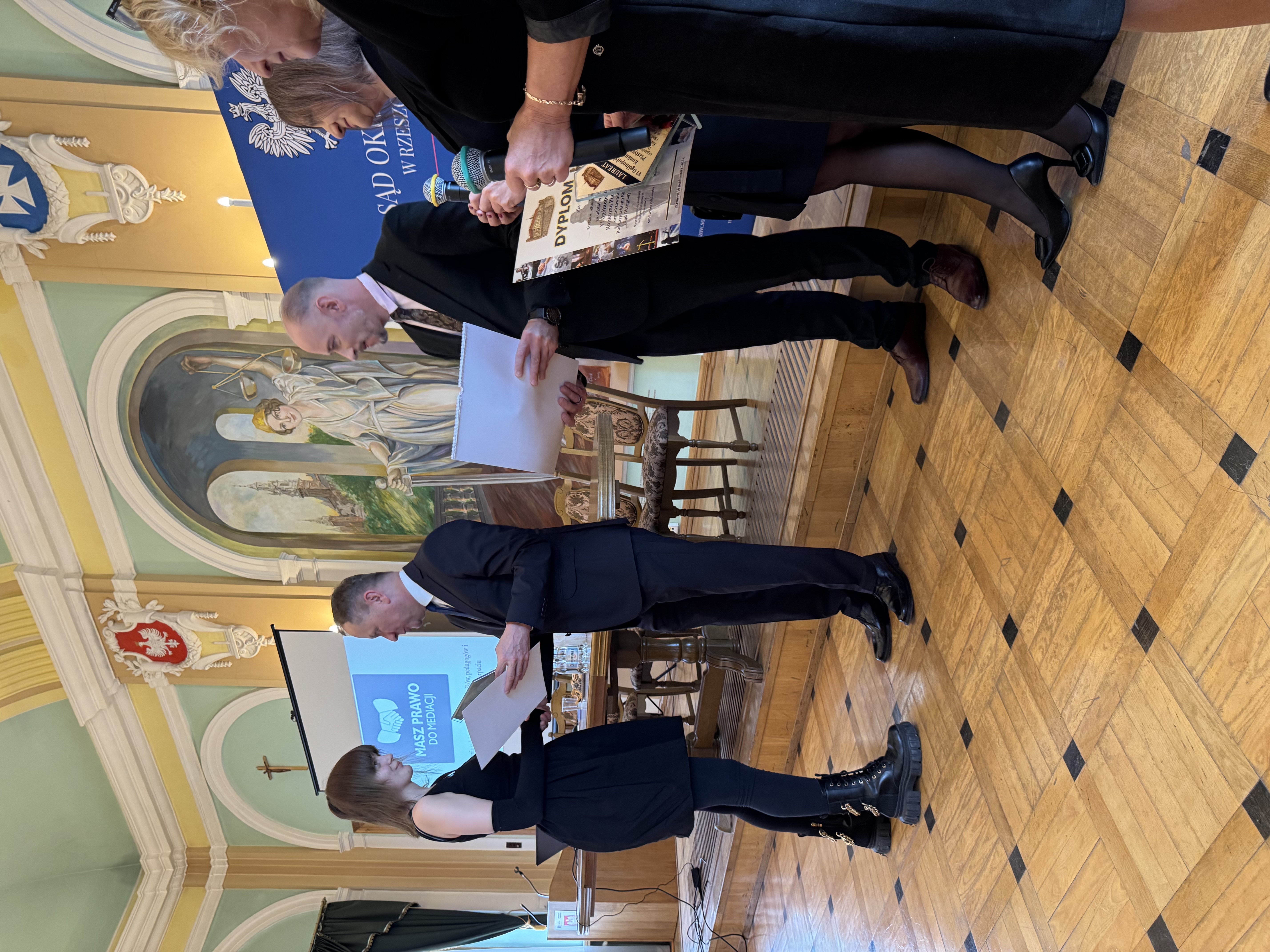 Podczas konferencji wręczono nagrody zwycięzcom VI Ogólnopolskiego konkursu plastycznego i V Ogólnopolskiego konkursu na symulację mediacji organizowanego przez Podkarpackiego Kuratora Oświaty oraz Sąd Okręgowy