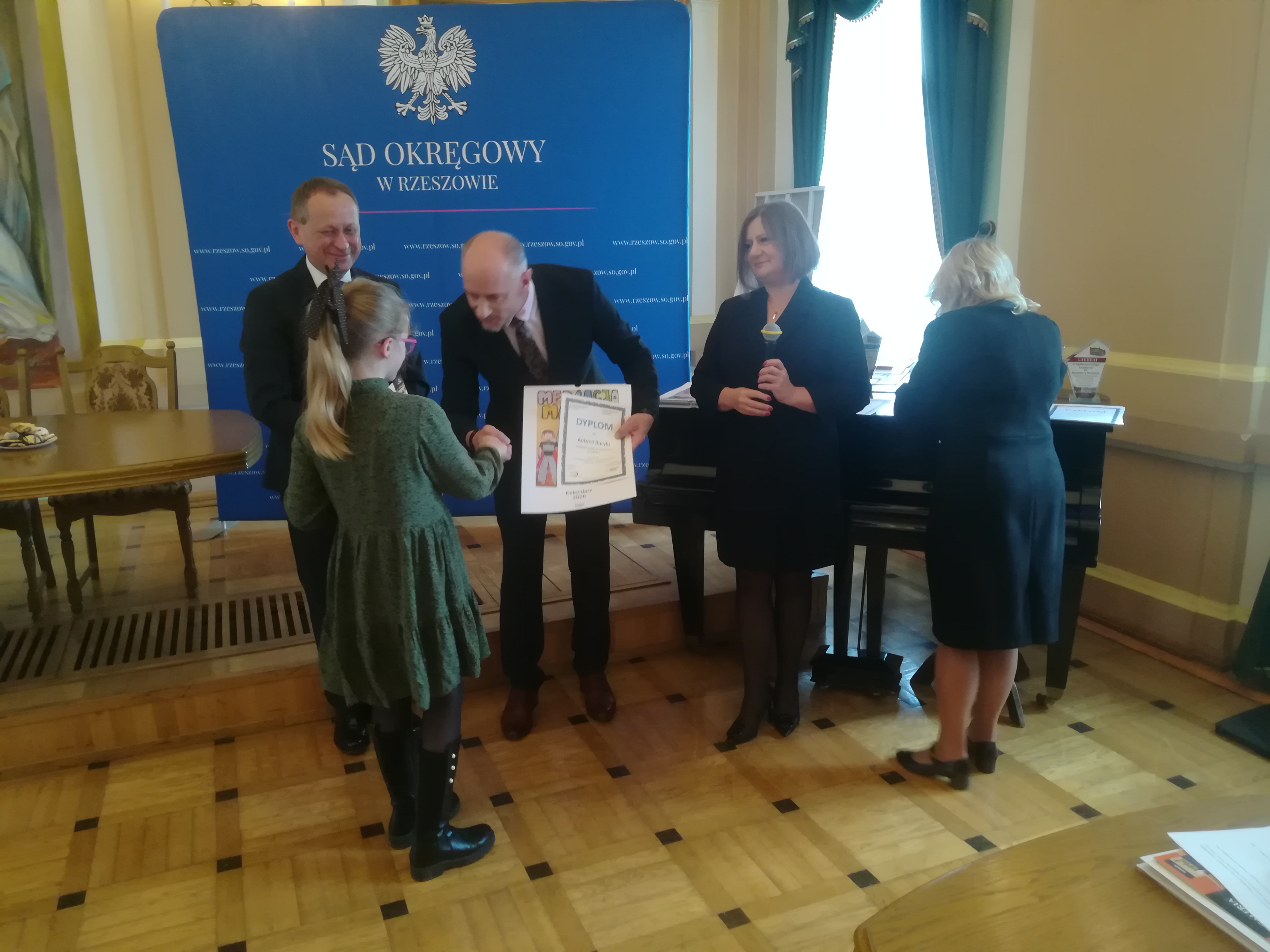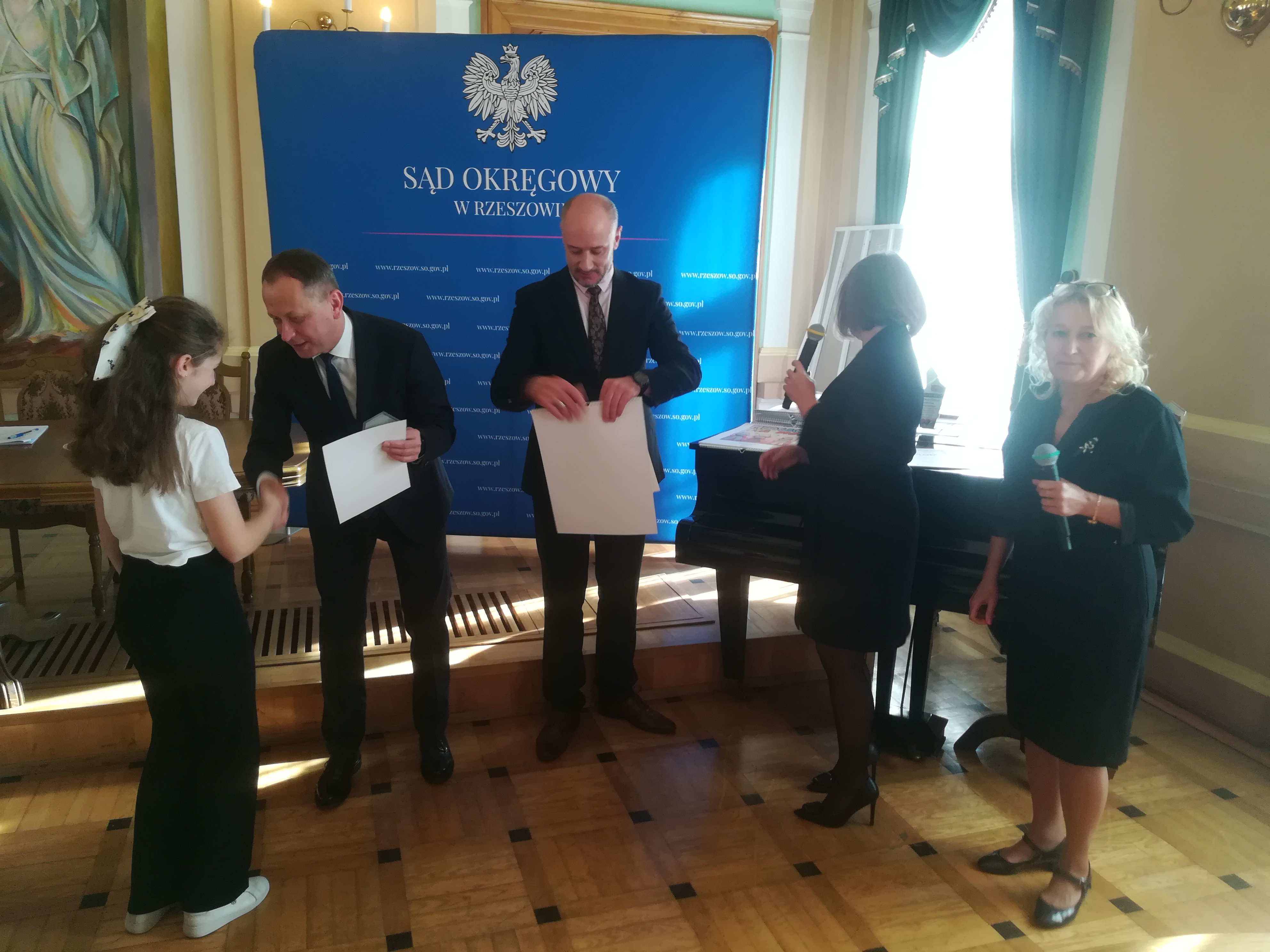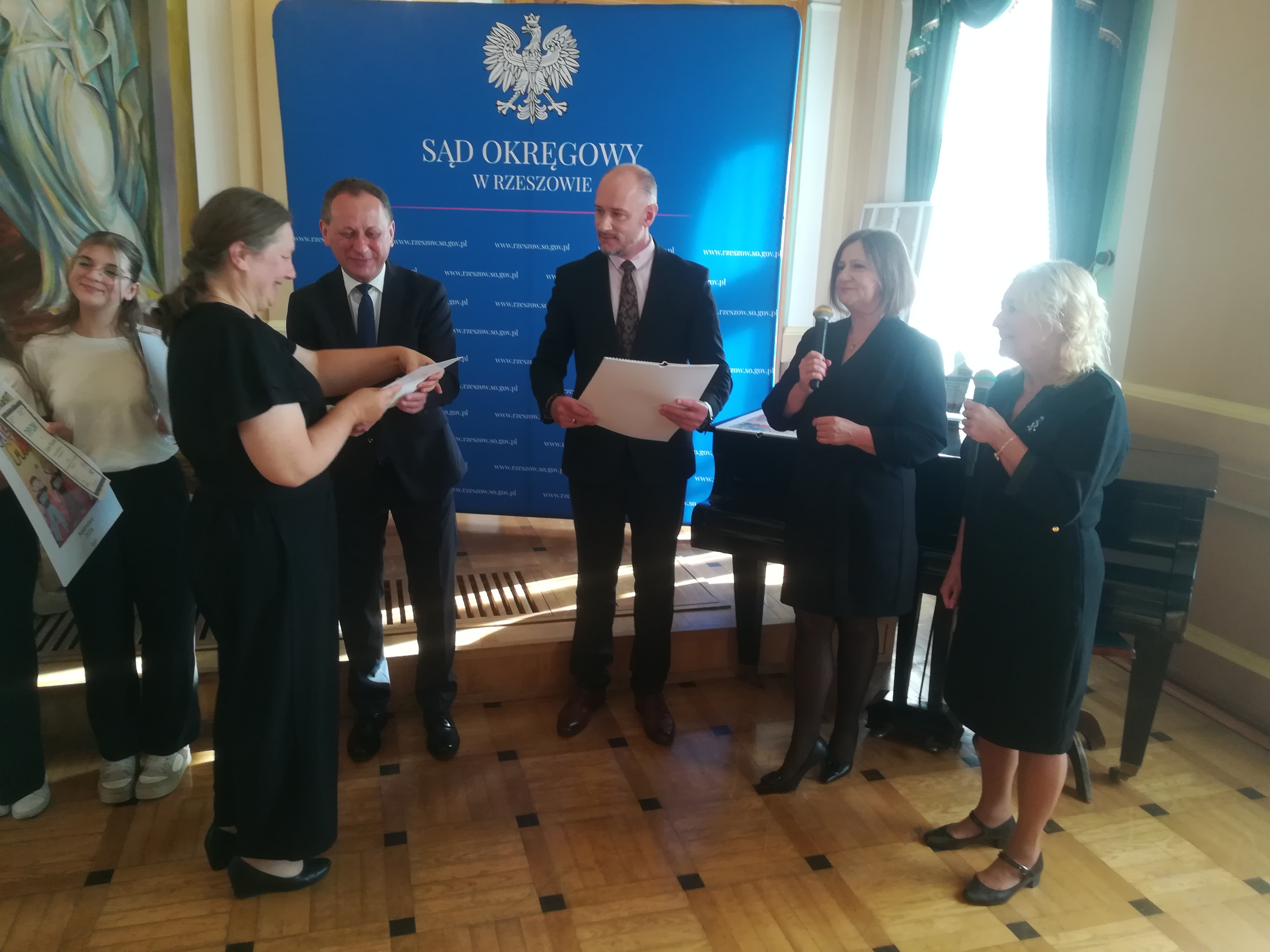 Prace plastyczne wykonane w ramach konkursu plastycznego eksponowane zaś były w budynku Sądu Okręgowego w Rzeszowie.