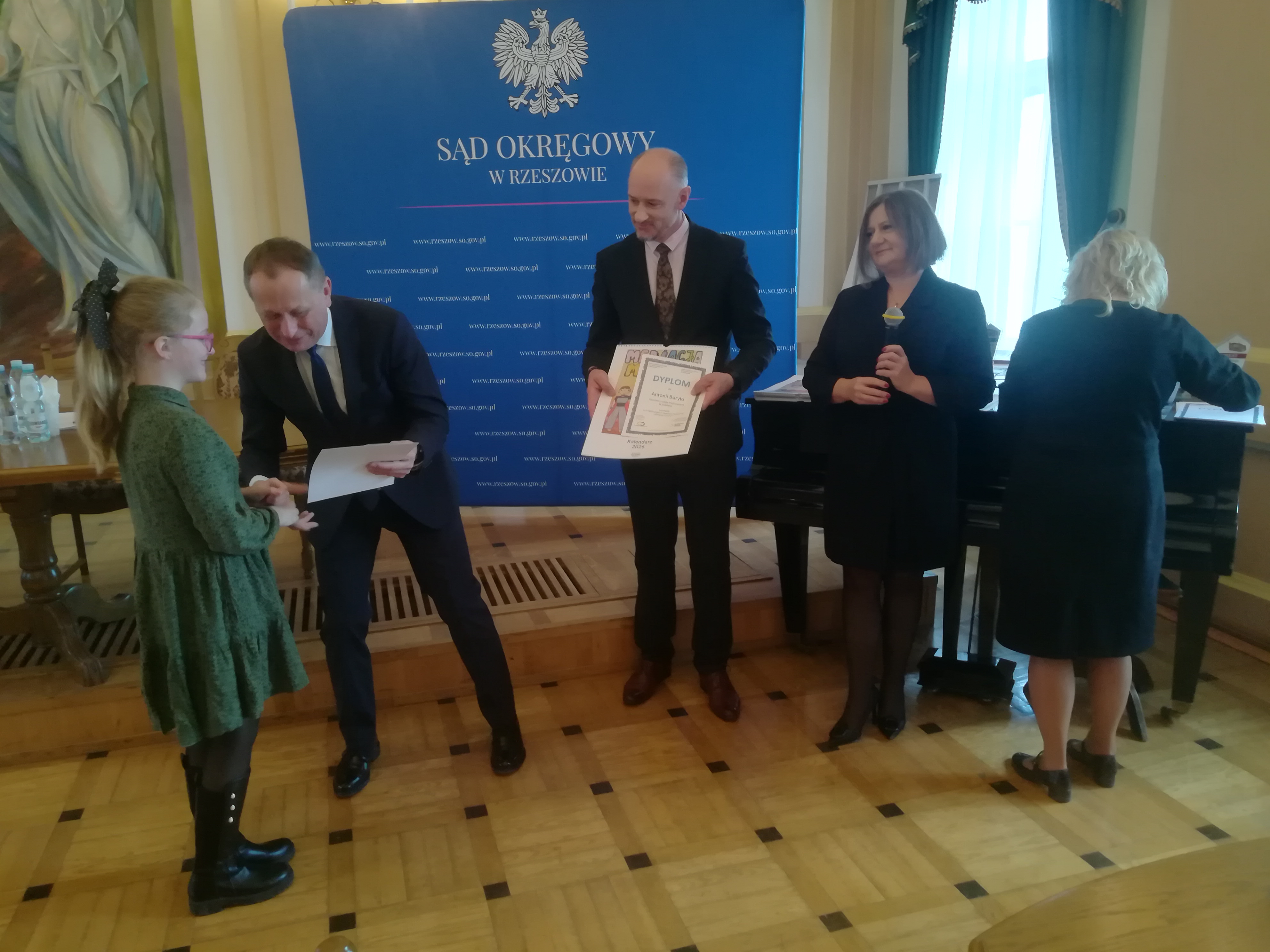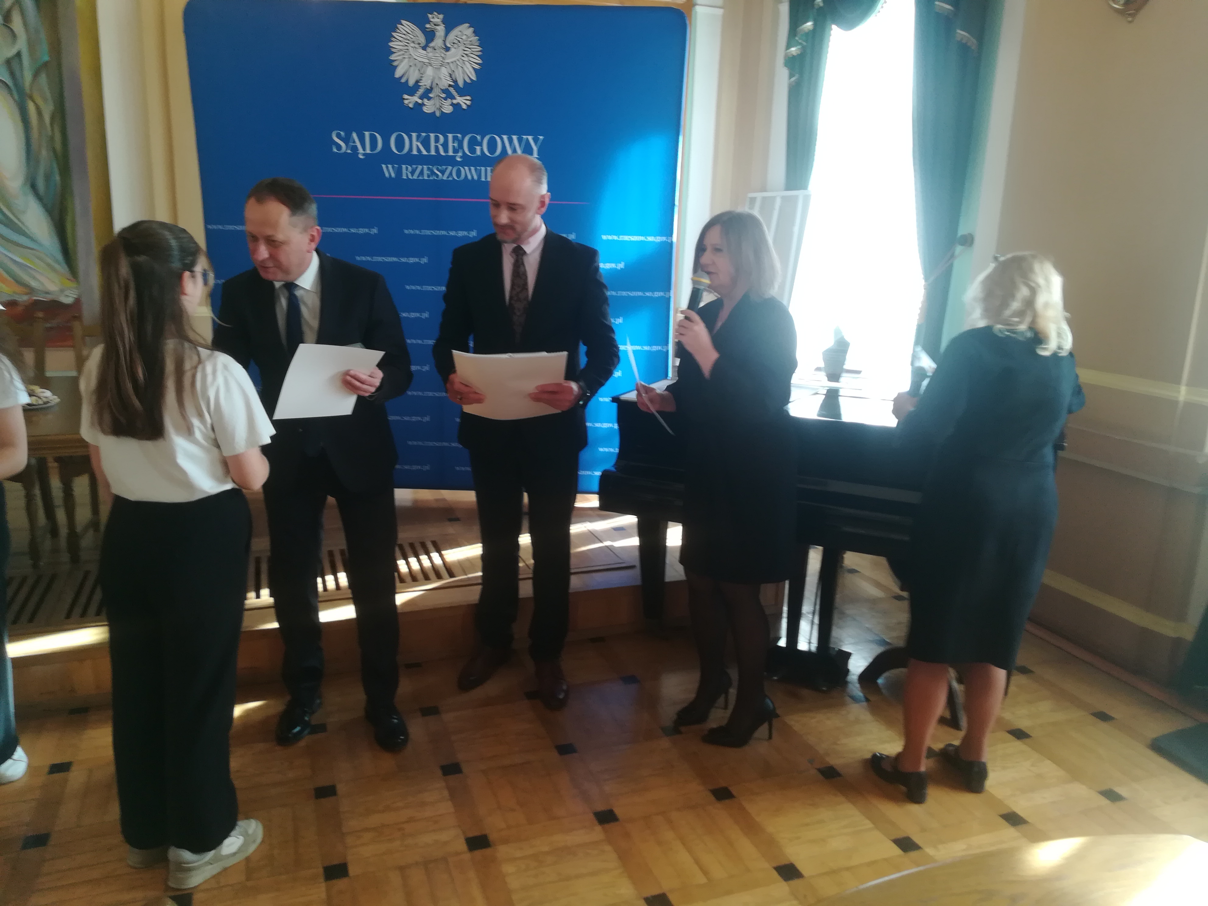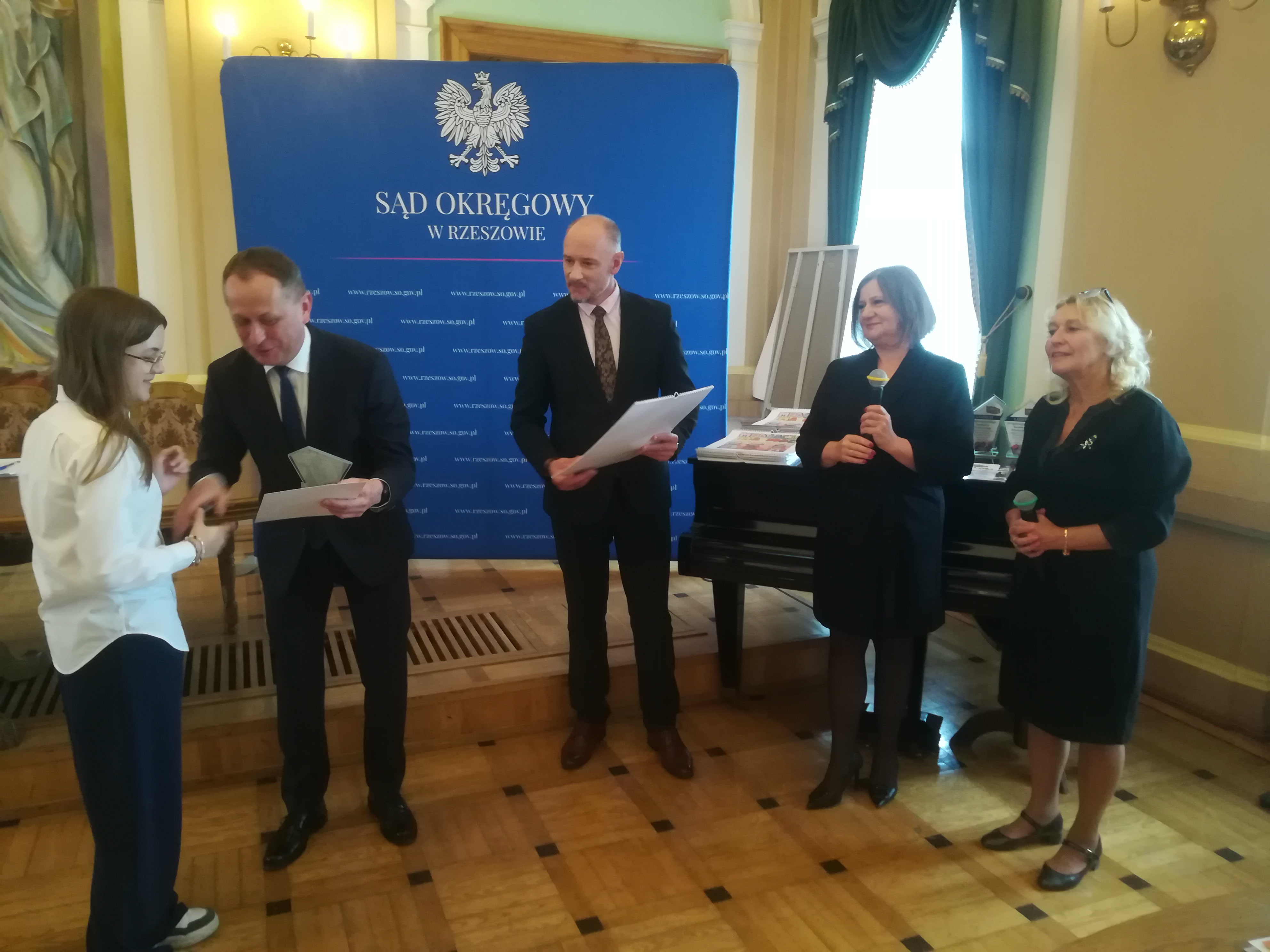 Prace plastyczne wykonane w ramach konkursu plastycznego eksponowane zaś były w budynku Sądu Okręgowego w Rzeszowie.